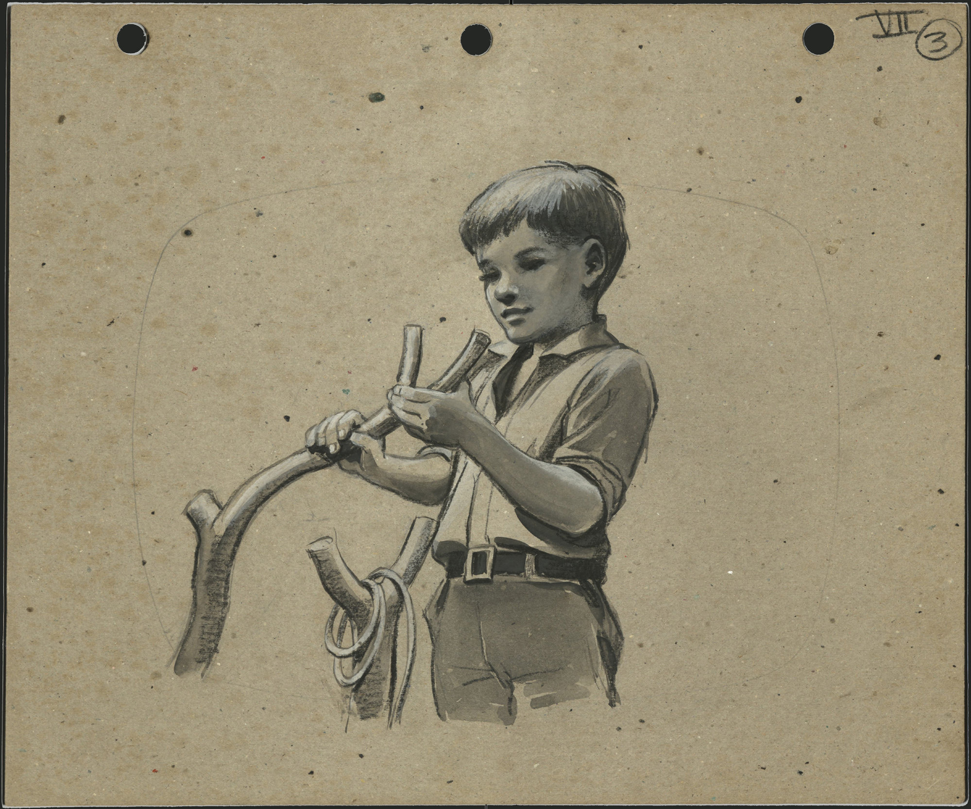 Senior, Margaret, 1917-1995, Untitled (Pt VII (3)) (Boy with wood and rope), [MS1314]. Living Histories, accessed 13/01/2026, https://livinghistories.newcastle.edu.au/nodes/view/73034