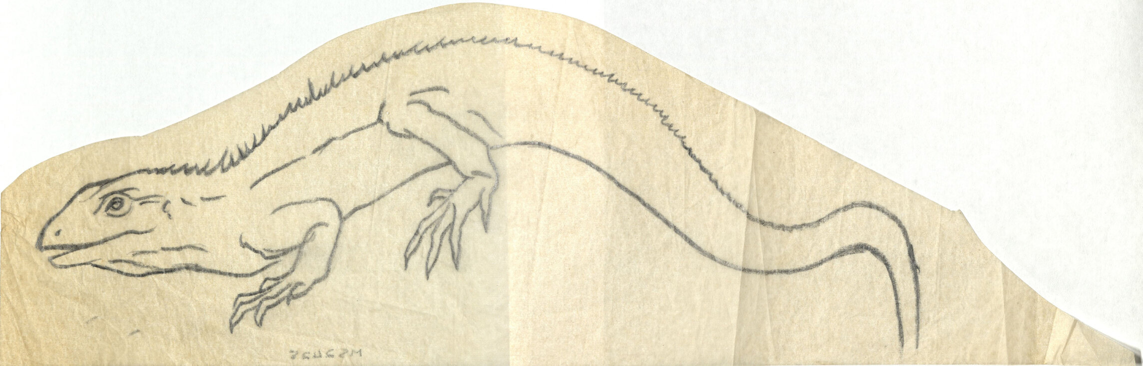 Senior, Margaret, 1917-1995, Study for Reptiles of New South Wales poster (Eastern Water Dragon), [MS2425]. Living Histories, accessed 16/01/2026, https://livinghistories.newcastle.edu.au/nodes/view/73638