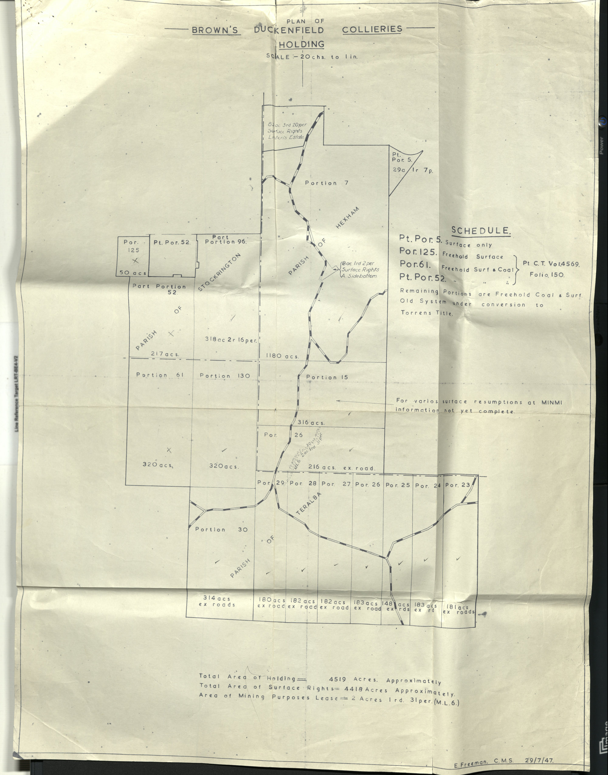 J. & A. Brown and Abermain Seaham Collieries Ltd., Plan : Duckenfield Colliery, NSW, 29 July 1947 (1947-07-29), [A7699(ii)-004-Duckenfield-29_July_1947]. Living Histories, accessed 15/02/2026, https://livinghistories.newcastle.edu.au/nodes/view/73798