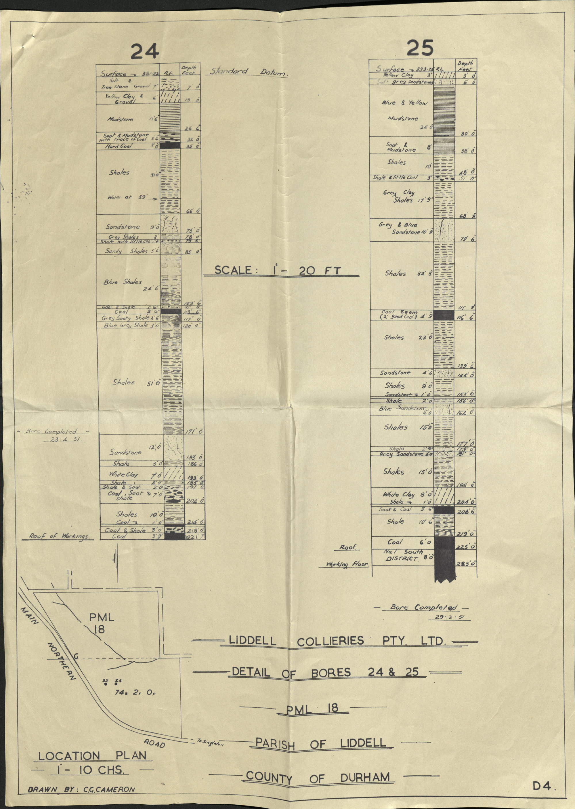 J. & A. Brown and Abermain Seaham Collieries Ltd., Liddell Colliery - Details of Bores 24 and 25, 29 March 1950 (1950-03-29), [A7702(i)-002]. Living Histories, accessed 24/03/2026, https://livinghistories.newcastle.edu.au/nodes/view/73855