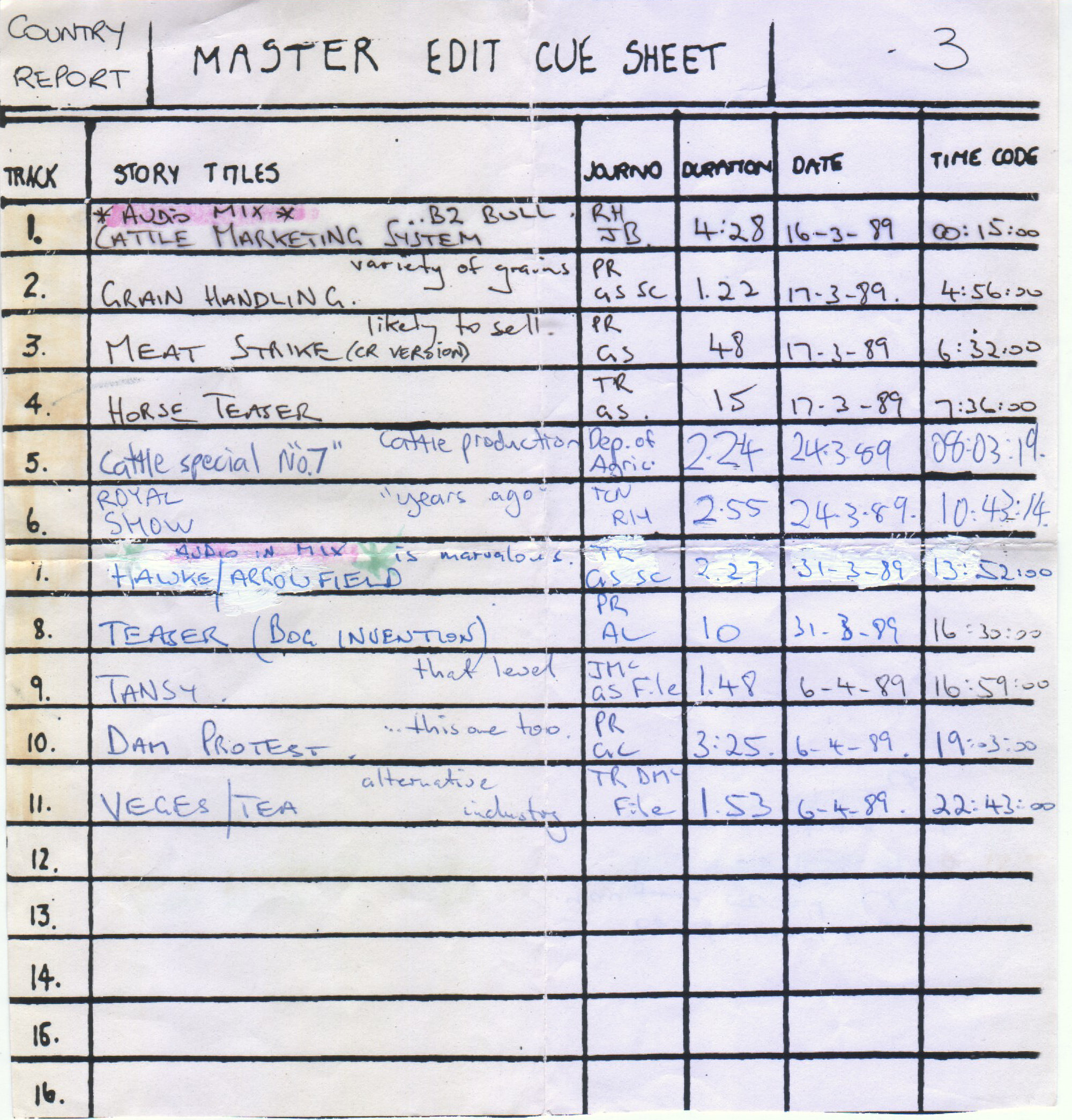 This is the Cue Sheet for Country Report