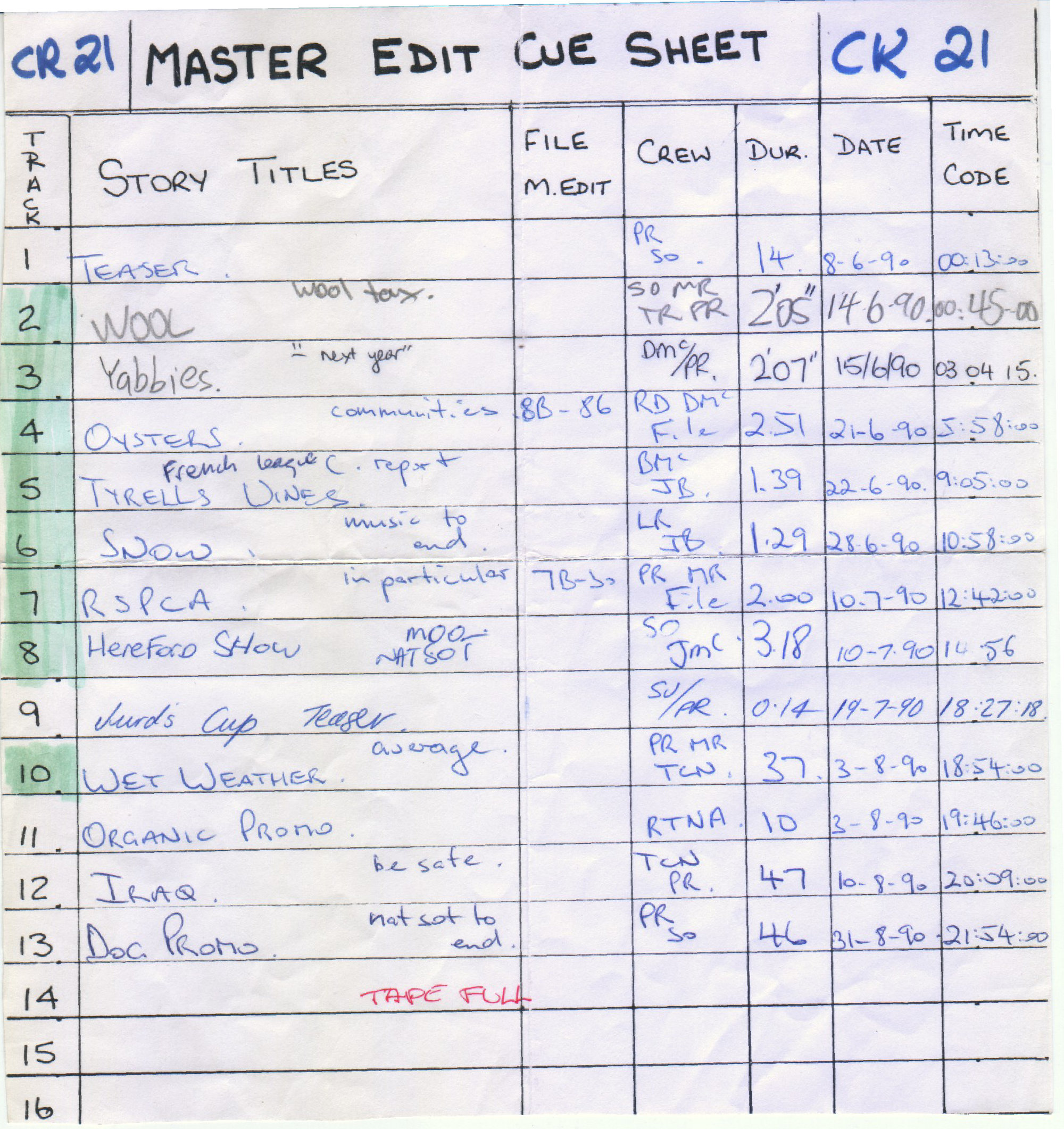 This is the Cue Sheet for Country Report
