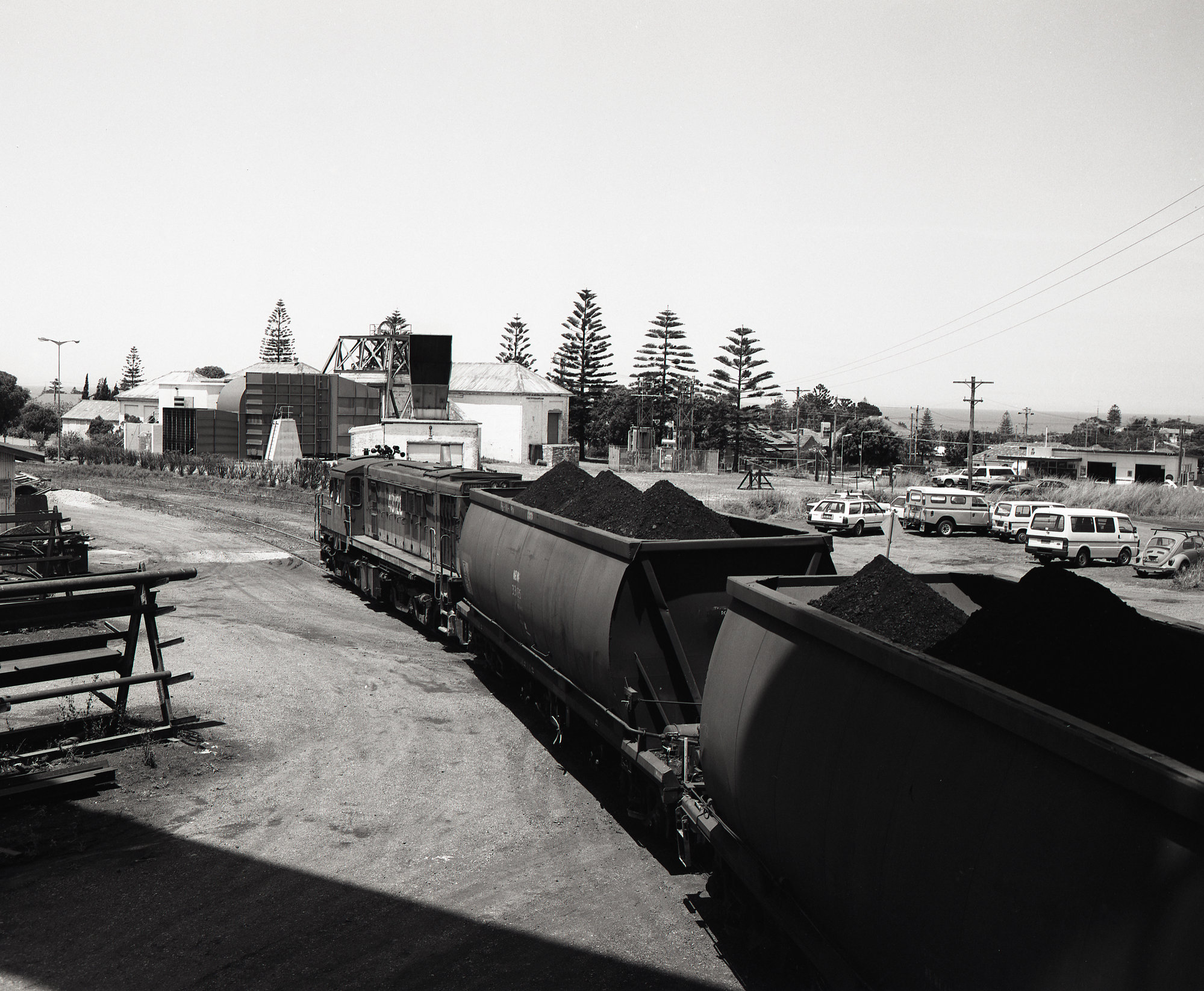 Andrews, Brian Robert, Upcast shaft behind 48126, 19 November 1991, Lambton Colliery push - pull trains (19th November 1991), [BRAN638_009]. Living Histories, accessed 17/04/2026, https://livinghistories.newcastle.edu.au/nodes/view/73919