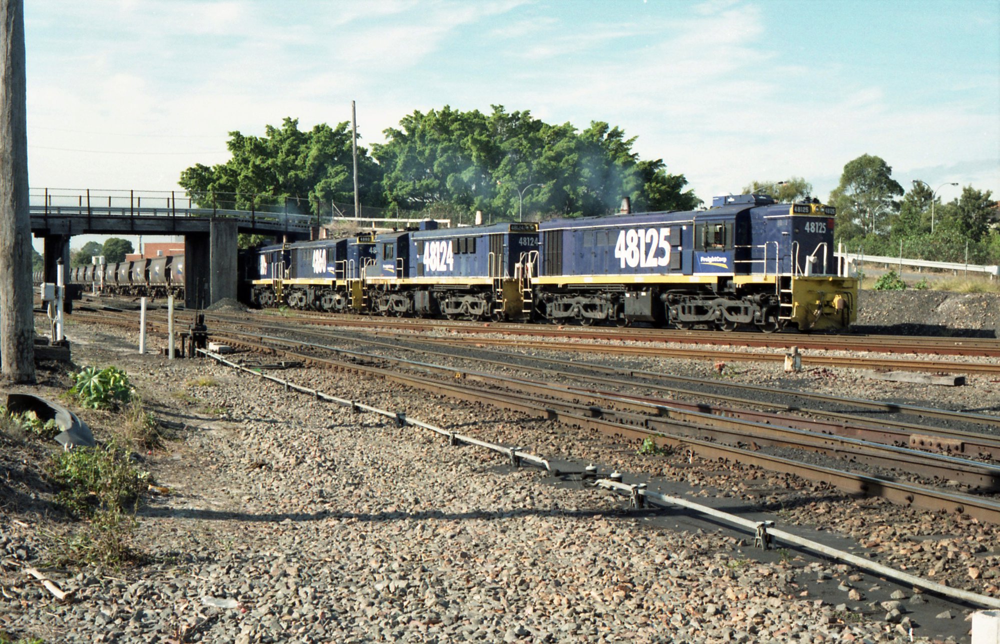 Sansom, Peter, 48124, 48124, 4860 and another 48 class pass under the bridge at Scholey Street heading towards Stockton Borehole Colliery., [Sansom_PW_1972-2017_026]. Living Histories, accessed 19/03/2026, https://livinghistories.newcastle.edu.au/nodes/view/74244