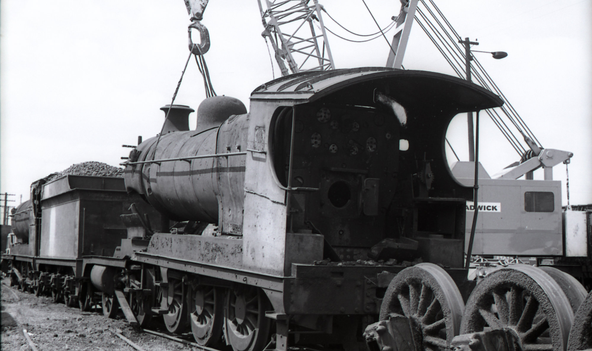 ROD 15 being wrecked, scrapping of ROD locomotives at Hexham, 21 September 1973, Richmond Vale Railway