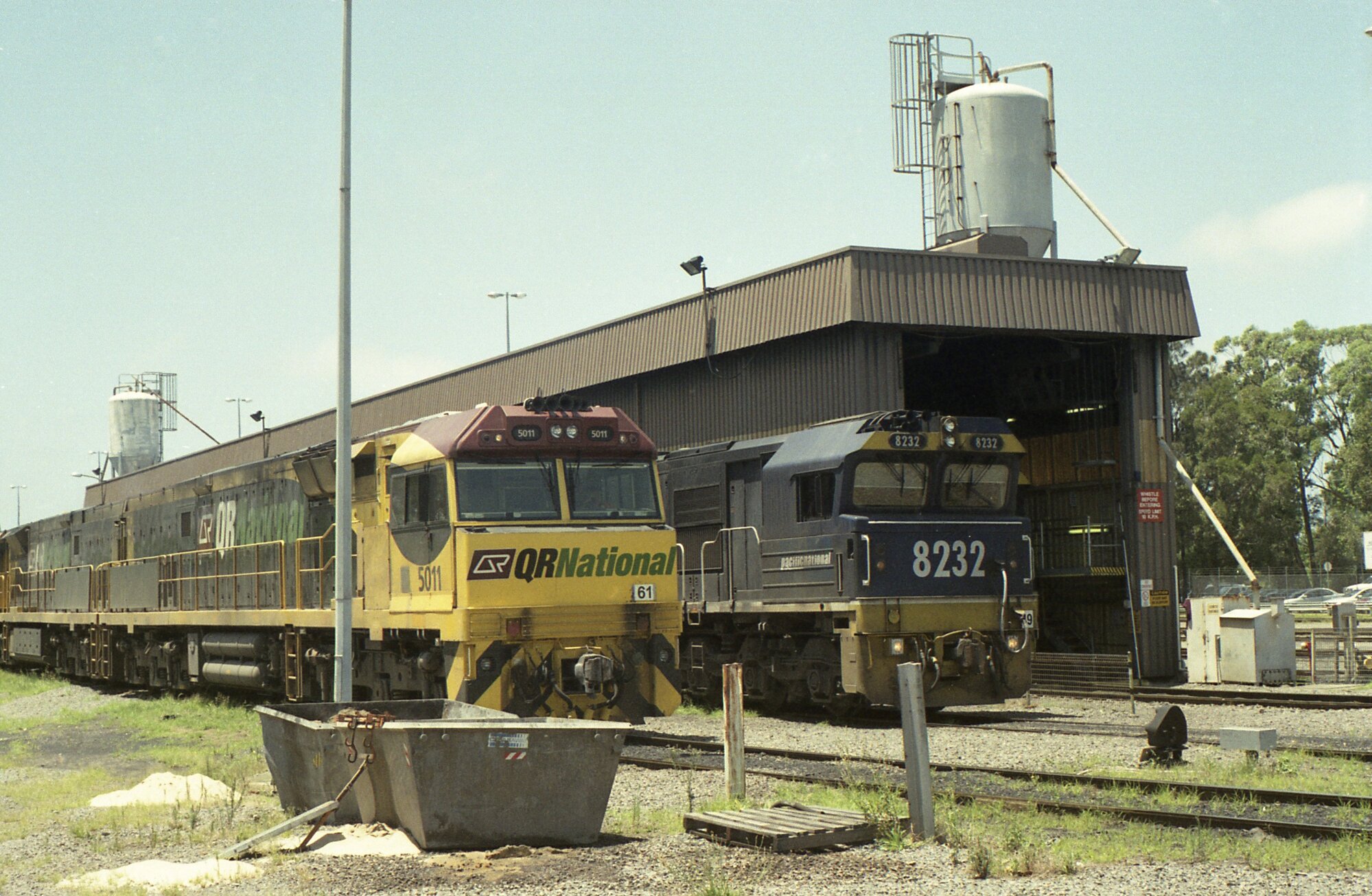 Sansom, Peter, QR National 5011 stands with a class mate ready to leave TEN departure while 8232 stands ready to depart from NINE, [Sansom_PW_1972-2017_299]. Living Histories, accessed 20/01/2026, https://livinghistories.newcastle.edu.au/nodes/view/75015