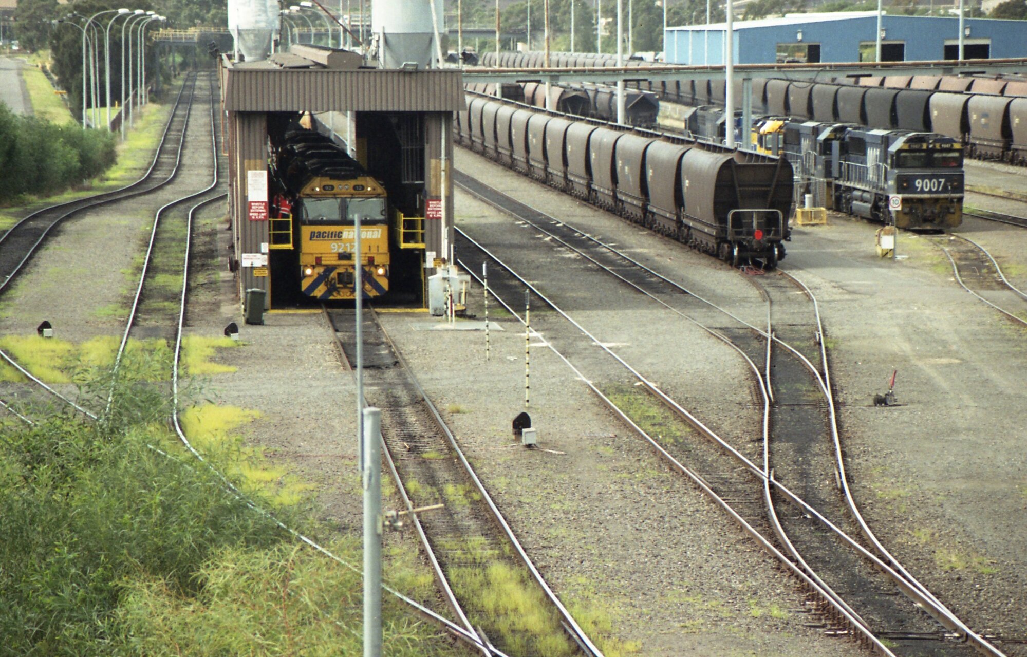 9012 receives attention in the fuel shed while 9007, another 90 class, a 92 class and an 82 class stand ...