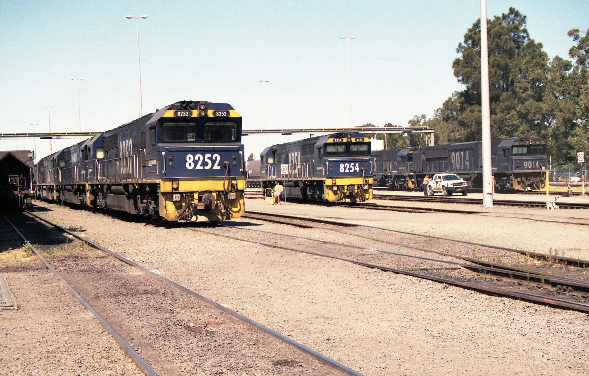 Sansom, Peter, 8252 with two classmates at the front of unit 36, 8254 is in the engine siding while 9014 and two classmates, [Sansom_PW_1972-2017_210]. Living Histories, accessed 18/03/2026, https://livinghistories.newcastle.edu.au/nodes/view/75074