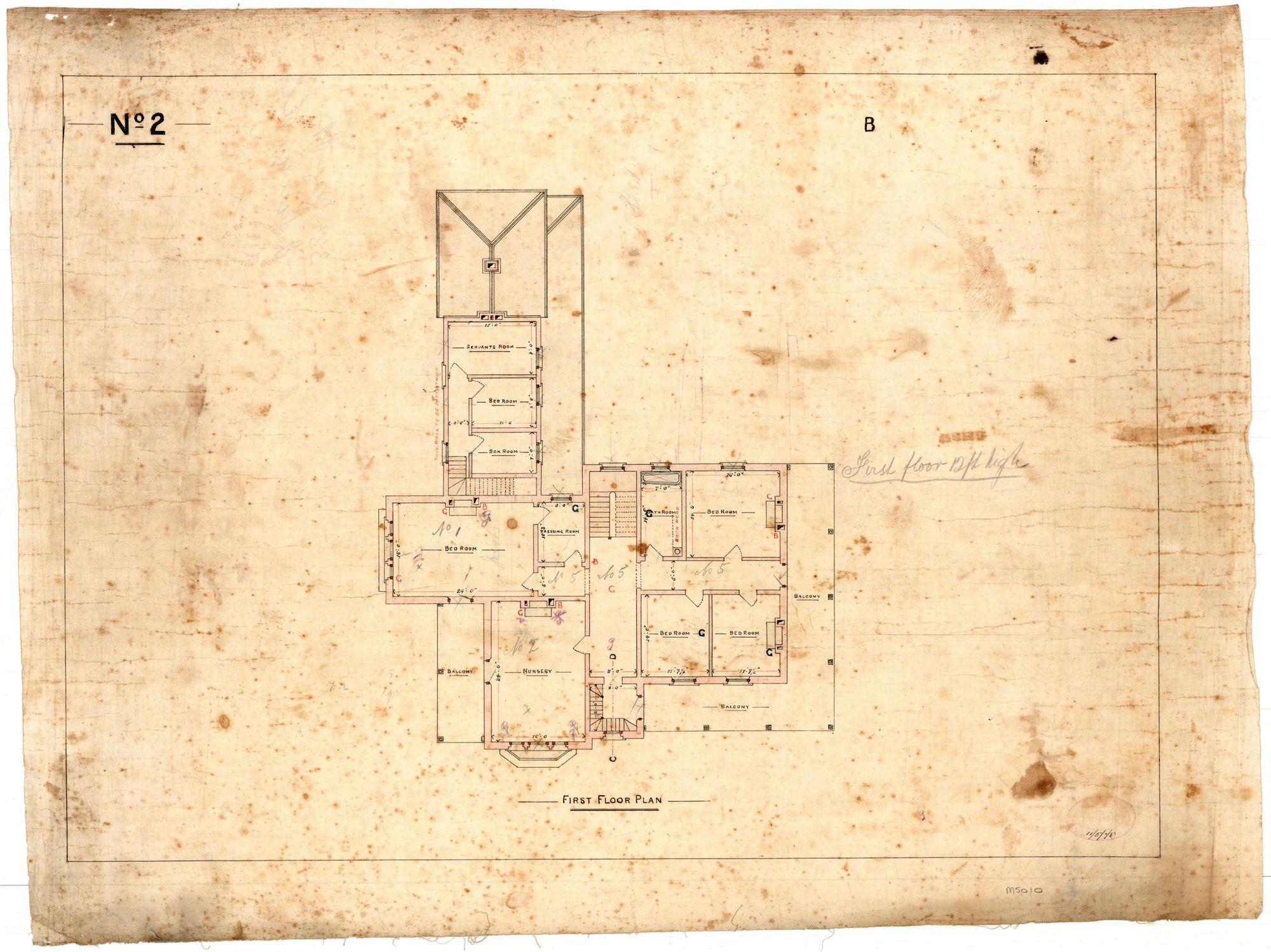 Pender, John Wiltshire, 1833-1917, Plan of Residence for B.W. Levy Esq. First Floor Plan. No. 2 of 6. 11 May 1878. (Cintra House) [Linen Copy] (1878-05-11), [M5010-2]. Living Histories, accessed 19/03/2026, https://livinghistories.newcastle.edu.au/nodes/view/75366