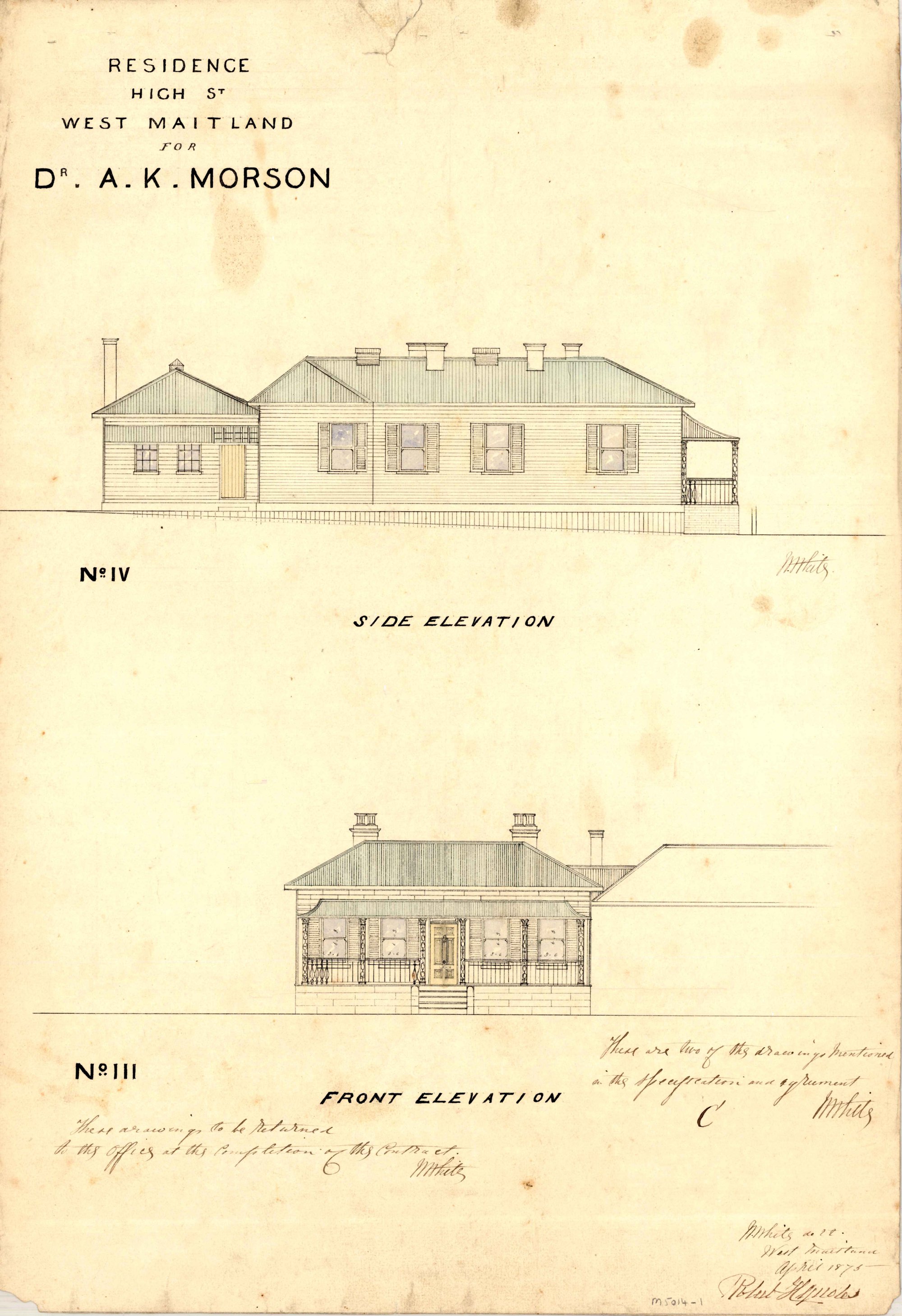 Pender, John Wiltshire, 1833-1917, Residence on High Street, West Maitland for Dr A.K. Morson (April 1875) - Nos. 3 and 4 of 6. (1875-04), [M5014-1]. Living Histories, accessed 10/03/2026, https://livinghistories.newcastle.edu.au/nodes/view/75375