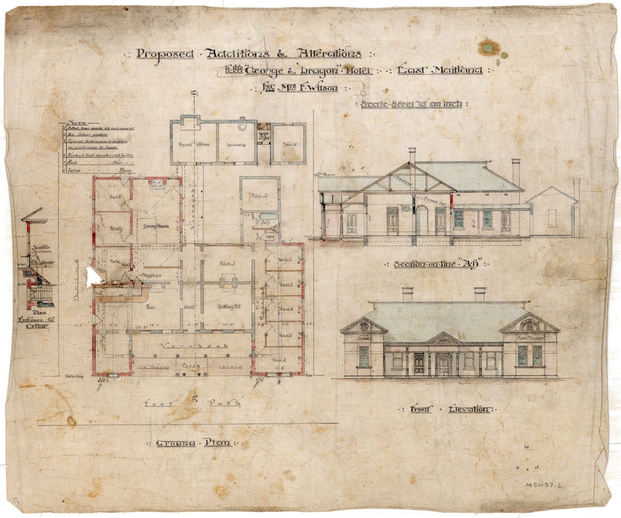 Pender, John Wiltshire, 1833-1917, Proposed Additions and Alterations to the "George & Dragon" Hotel for Mrs F. Wilson (12 June 1905) (1905-06-12), [M5037-2]. Living Histories, accessed 16/04/2026, https://livinghistories.newcastle.edu.au/nodes/view/75431