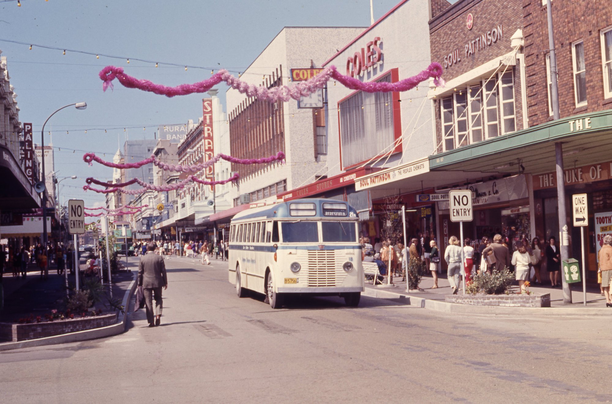 Ward, John, Raymond Terrace Bus Co AEC Regal III, 5756 Hunter Street, Newcastle, NSW, 18 September 1971 (18th September 1971), [02888_180971]. Living Histories, accessed 15/04/2026, https://livinghistories.newcastle.edu.au/nodes/view/75651