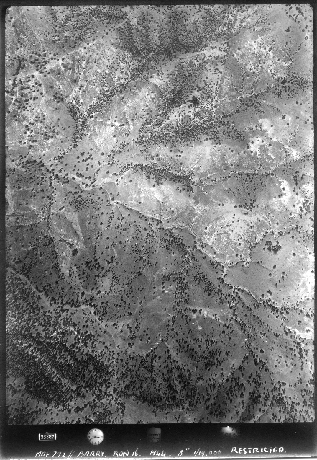 Barry, NSW - Aerial photograph, 1944 (88387) (1944), [BARRY-07-1944-R016-792-88387]. Living Histories, accessed 20/03/2026, https://livinghistories.newcastle.edu.au/nodes/view/75997