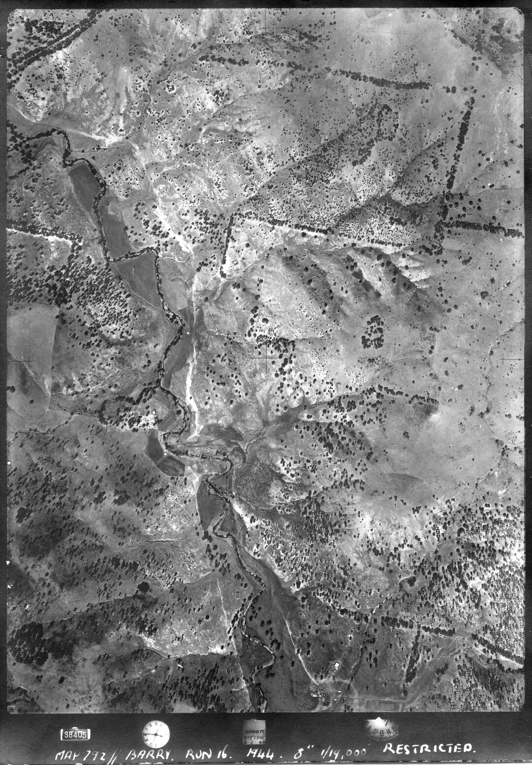 Barry, NSW - Aerial photograph, 1944 (88405) (1944), [BARRY-07-1944-R016-792-88405]. Living Histories, accessed 09/03/2026, https://livinghistories.newcastle.edu.au/nodes/view/76015