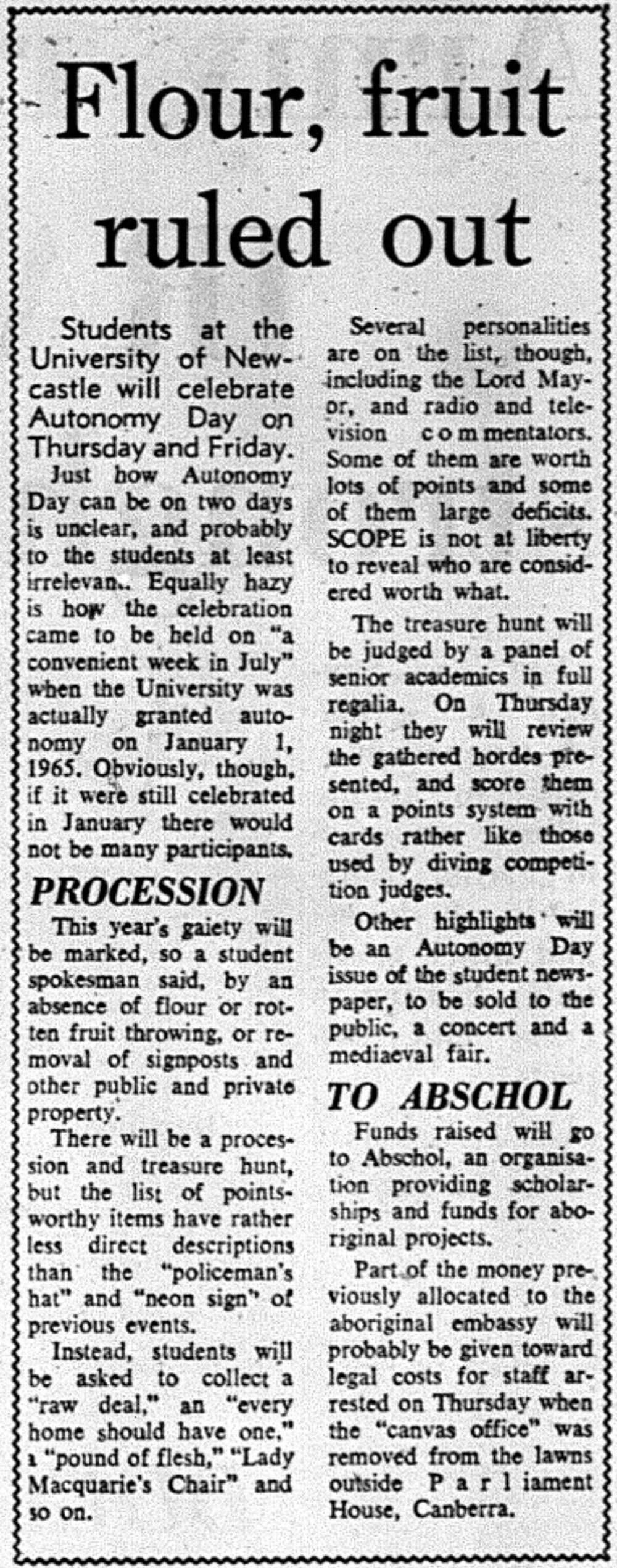 Flour, fruit ruled out - 24th July 1972. (1972). Living Histories, accessed 19/03/2026, https://livinghistories.newcastle.edu.au/nodes/view/7623
