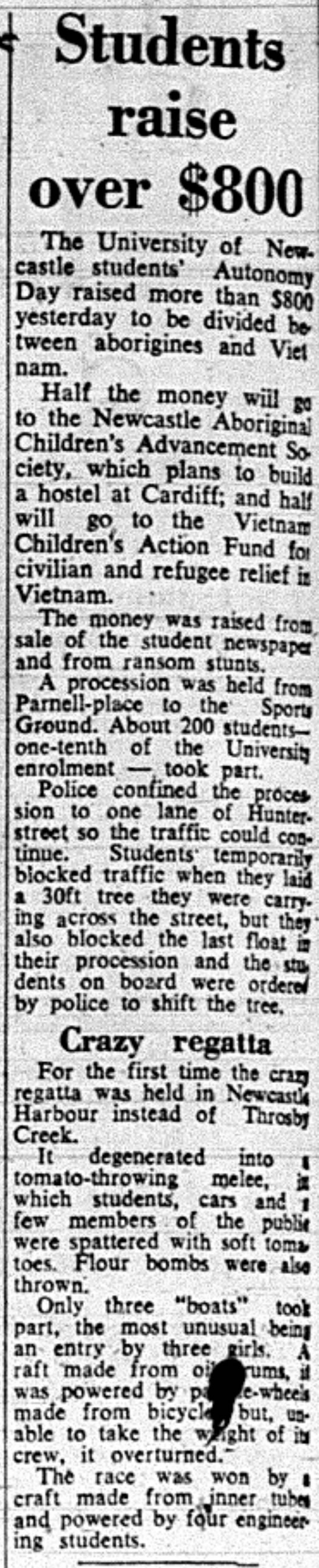 Students raise over $800 - 4th July 1968. (1968). Living Histories, accessed 09/02/2026, https://livinghistories.newcastle.edu.au/nodes/view/7636