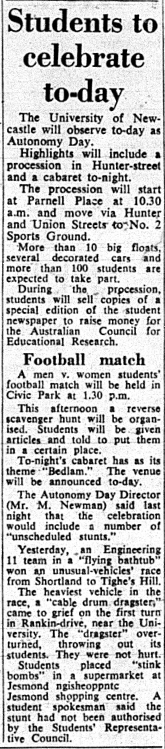 Students to celebrate to-day - 6th July 1966. (1966). Living Histories, accessed 11/03/2026, https://livinghistories.newcastle.edu.au/nodes/view/7647