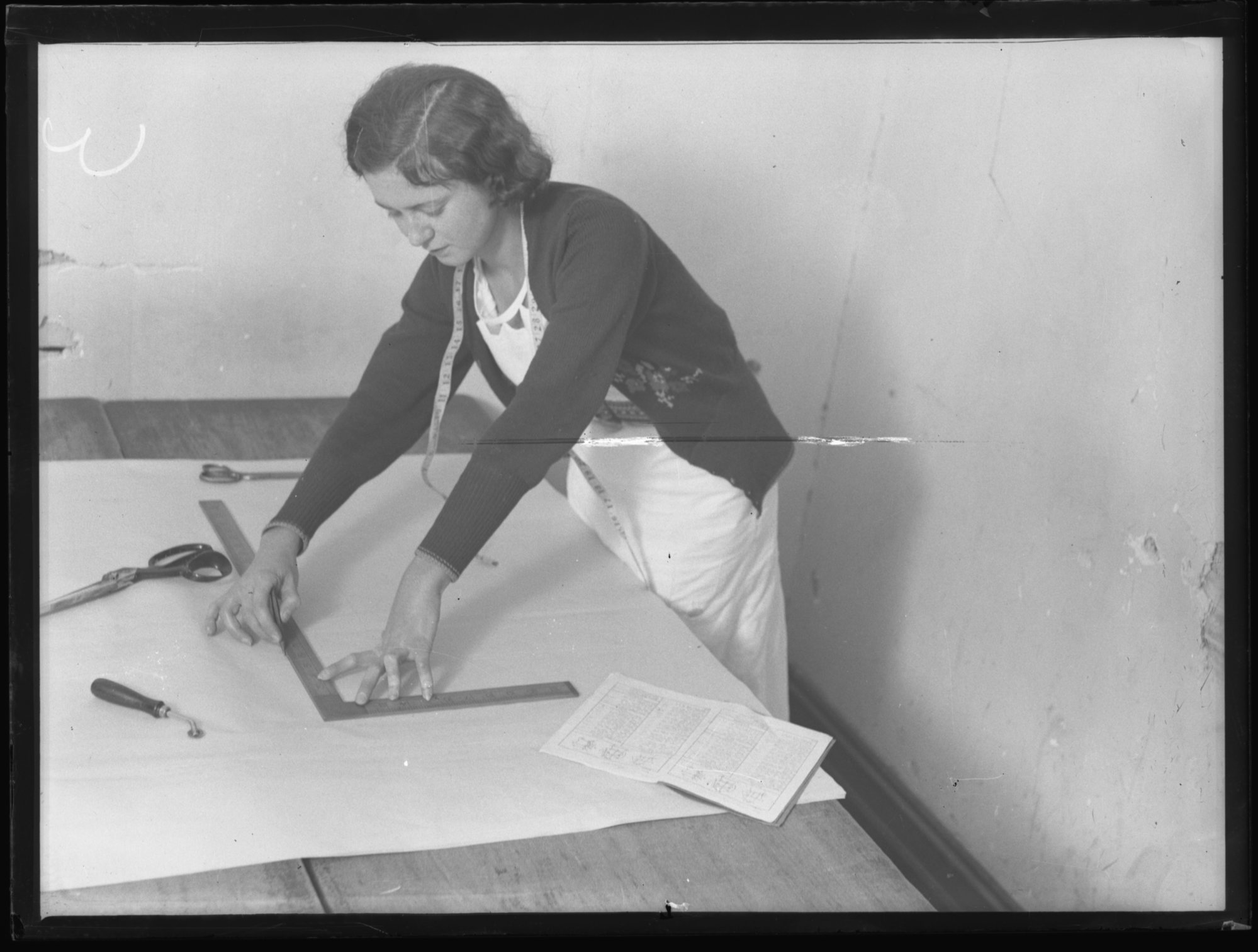 Dressmaker working on a pattern, Newcastle Technical College, 1933