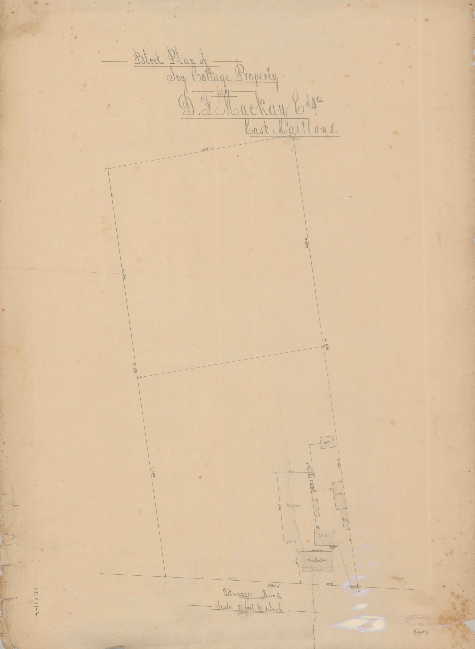 Pender, John Wiltshire, 1833-1917, Block Plan of Ivy Cottage Property for D.F. Mackay Esq. East Maitland, NSW (10th December 1883) (1883-12-10), [M5231-4]. Living Histories, accessed 19/03/2026, https://livinghistories.newcastle.edu.au/nodes/view/76648