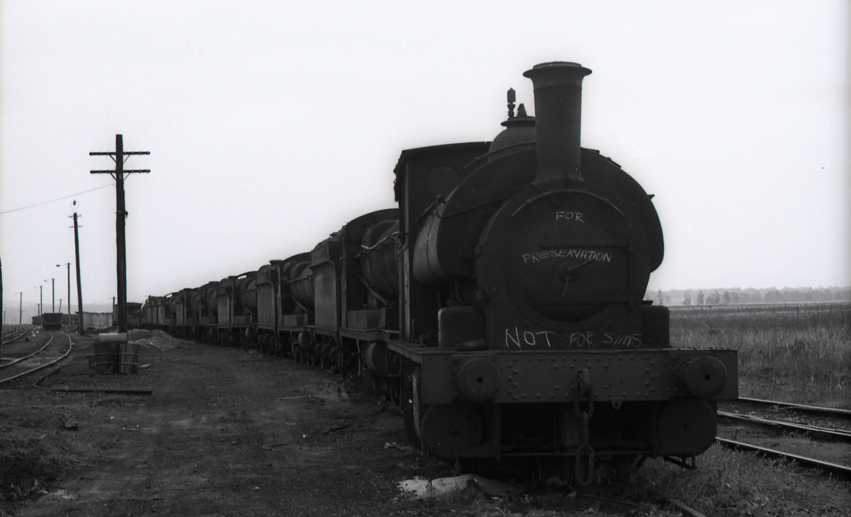 Rotten row with No. 2 leading loco, scrapping of RODs at Hexham, 9 September 1973, Richmond Vale Railway