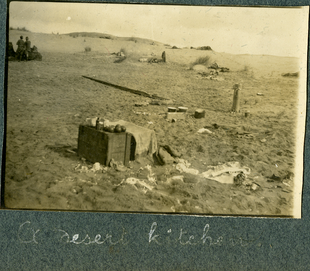"A desert kitchen", World War I (28 July 1914 – 11 November 1918), [P106h-10]. Living Histories, accessed 24/01/2026, https://livinghistories.newcastle.edu.au/nodes/view/7687