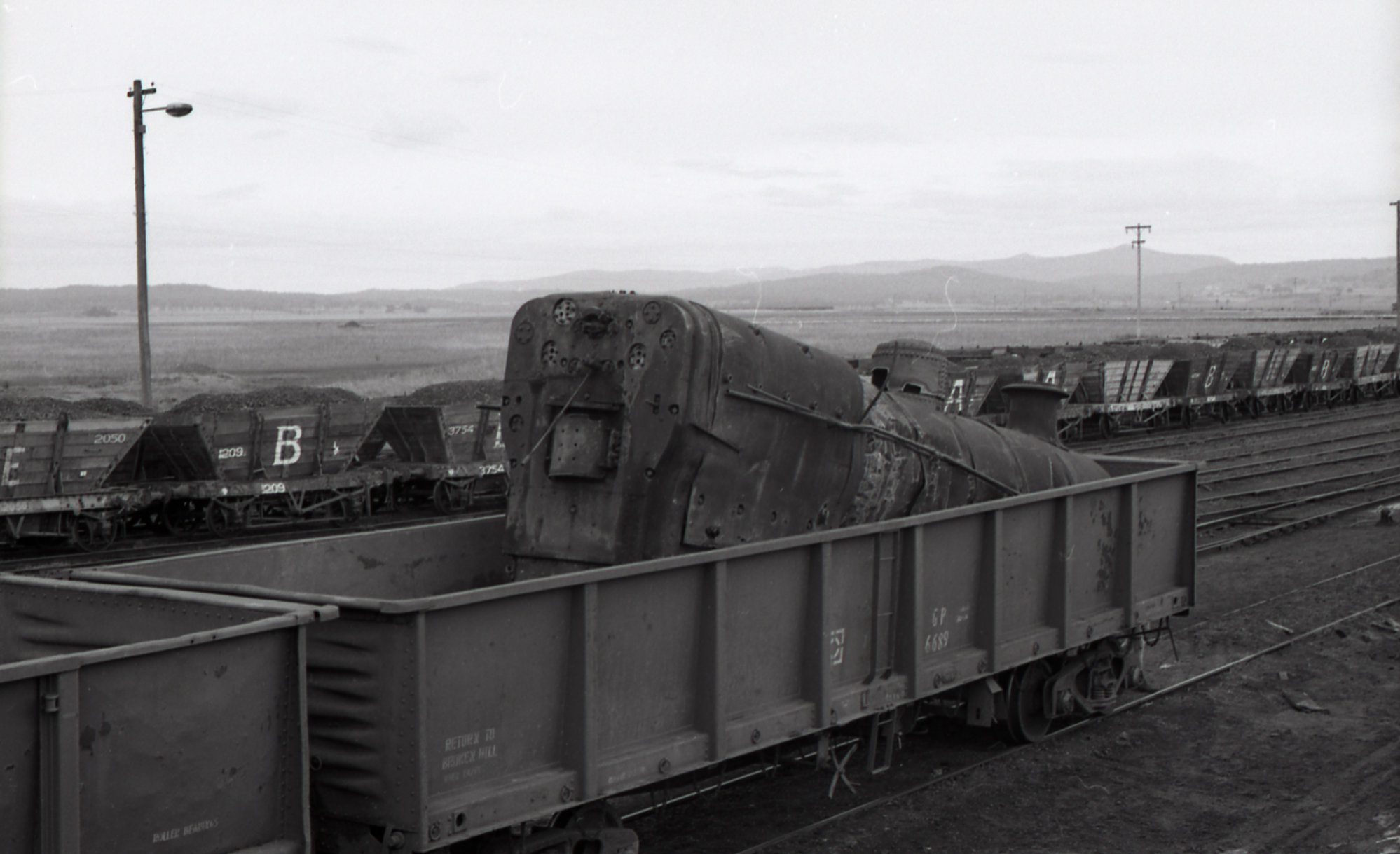 Boiler of ROD 22 in GP truck, scrapping of RODs at Hexham, 15 September 1973, Richmond Vale Railway