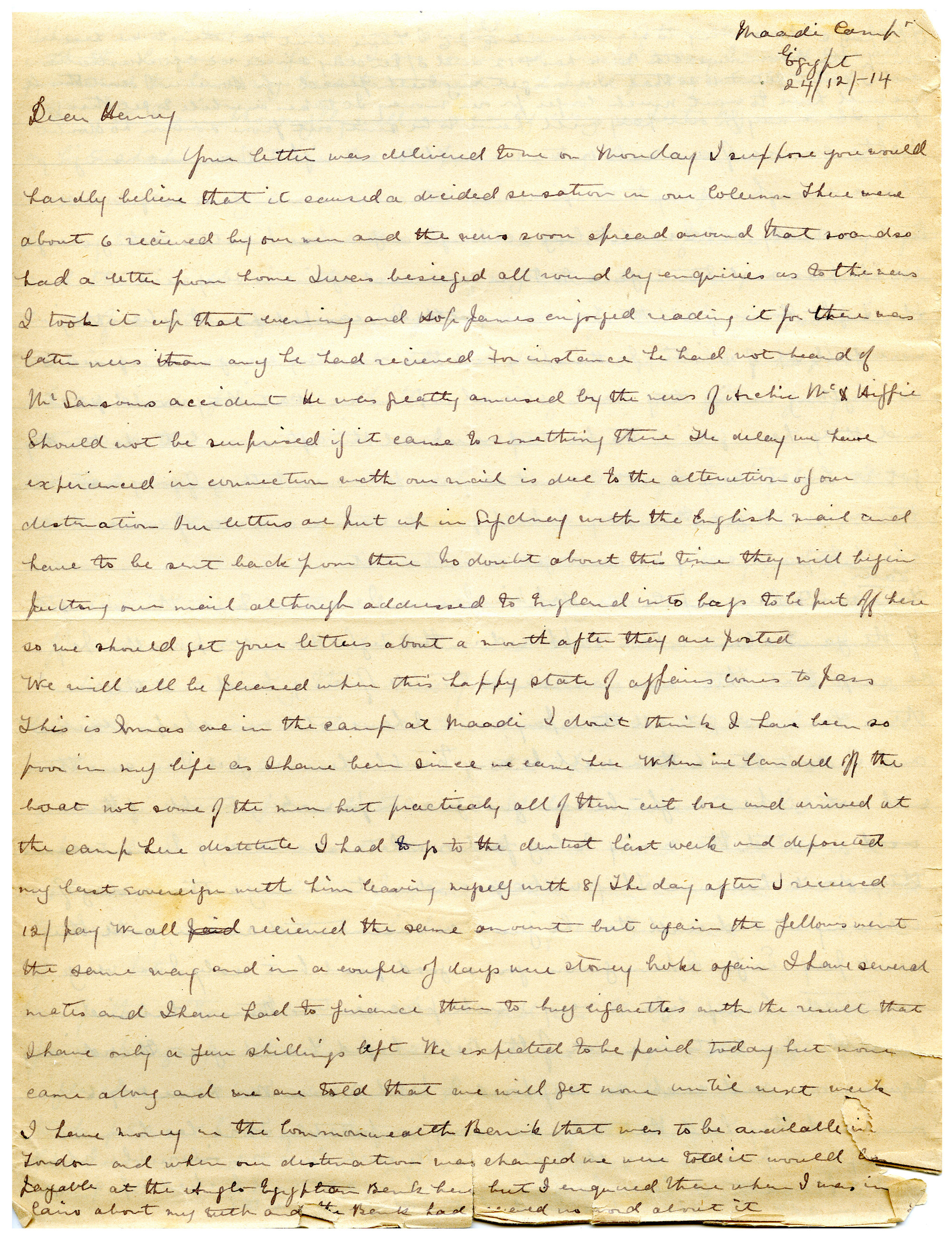 Letter 019 - Letter from James Dalton to Harry Dalton from Maadi Camp, 24 December 1914