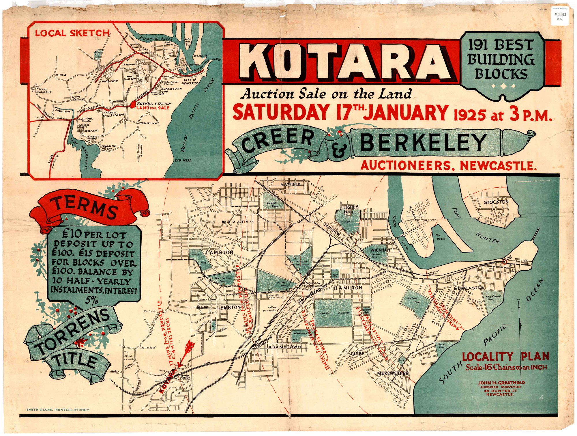 John H. Greathead, Kotara Subdivision Plan, Saturday 17 January 1925 (17th January 1925), [M0060]. Living Histories, accessed 15/01/2026, https://livinghistories.newcastle.edu.au/nodes/view/77246