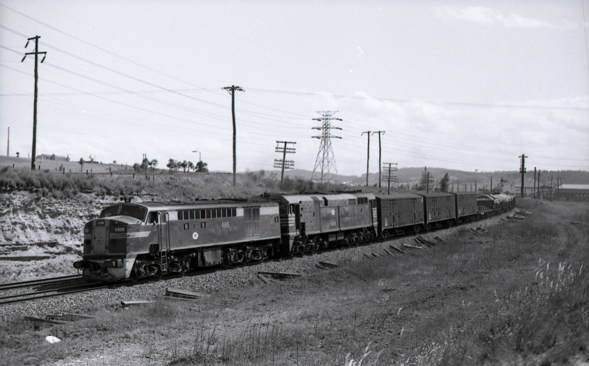 Andrews, Brian Robert, 4305 and 44200 on down goods, 24 November 1971, Argenton, NSW, NSWGR (24th November 1971), [BRAN029_022]. Living Histories, accessed 16/04/2026, https://livinghistories.newcastle.edu.au/nodes/view/77400