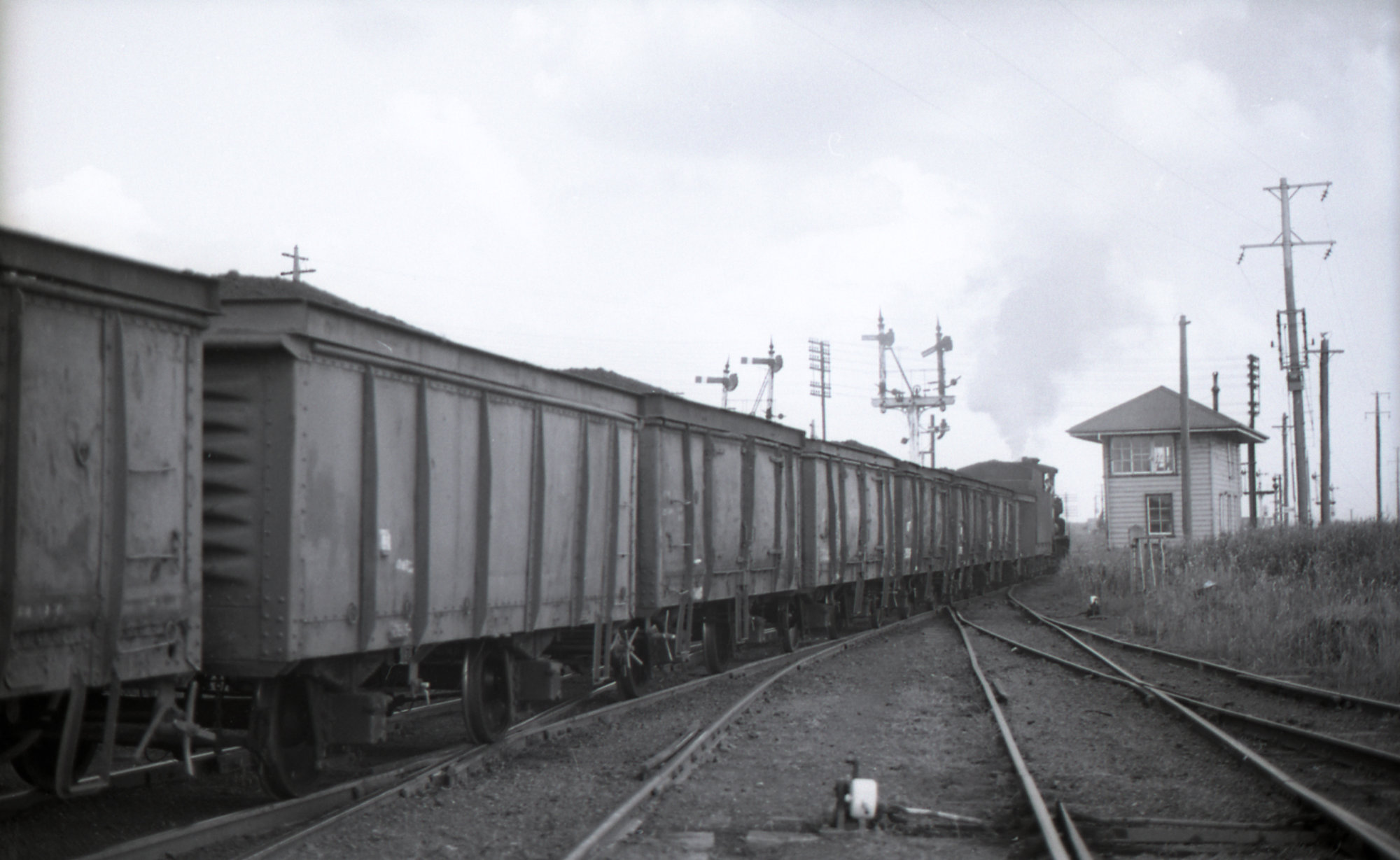 Brian R. Andrews, 5485 and UT trucks, Hexham, NSW, 8 February 1972, Richmond Vale Railway, NSWGR (8th February 1972), [BRAN039_026]. Living Histories, accessed 14/03/2026, https://livinghistories.newcastle.edu.au/nodes/view/78027
