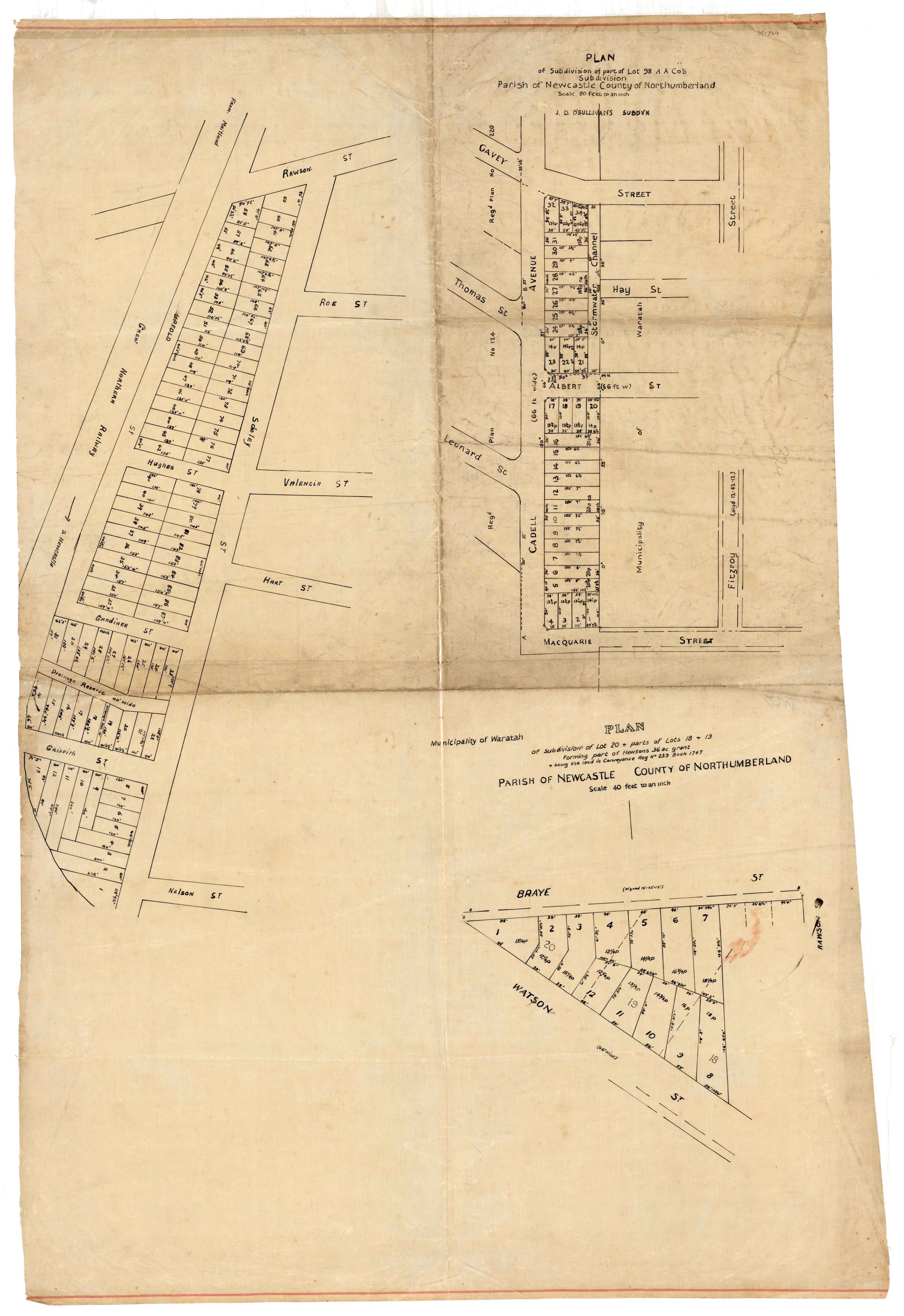 Newcastle Subdivision Plan, [n.d.], [M1754]. Living Histories, accessed 20/03/2026, https://livinghistories.newcastle.edu.au/nodes/view/78073