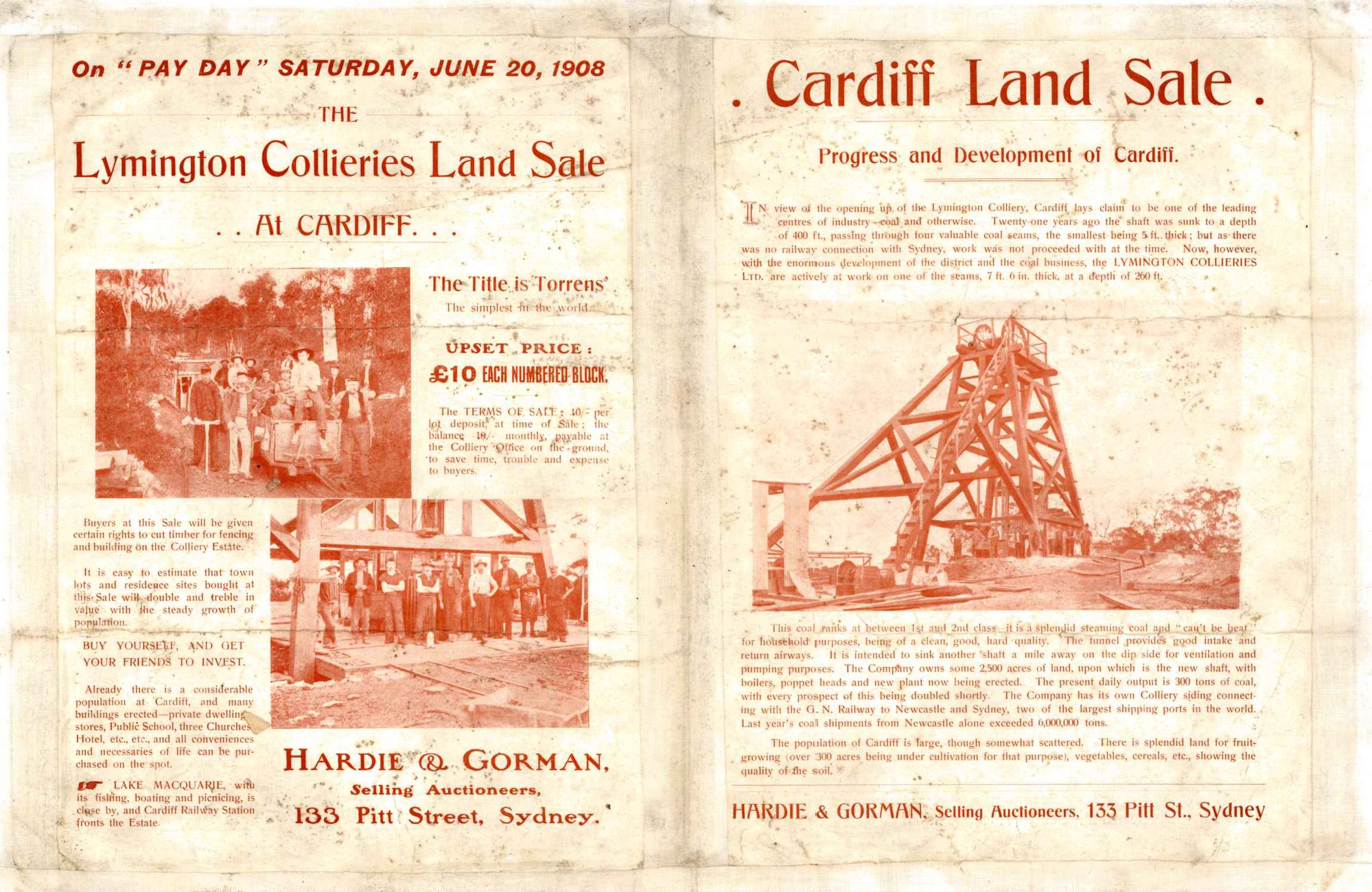 Cardiff: Lymington Collieries Land Sale, June 20, 1908 (Reverse) (1908-06-20), [M2651v]. Living Histories, accessed 12/03/2026, https://livinghistories.newcastle.edu.au/nodes/view/78217