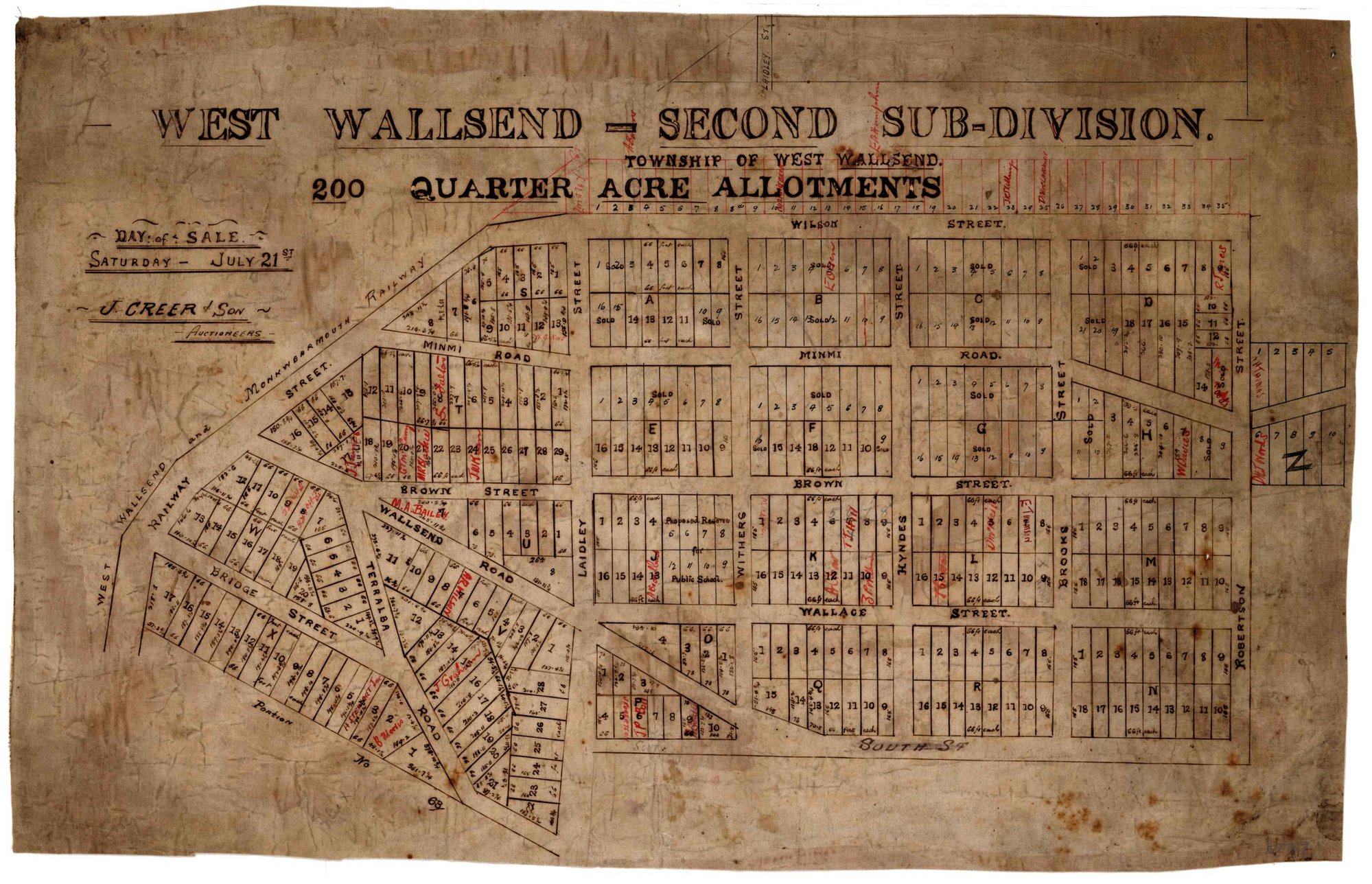 West Wallsend – second subdivision – Township of West Wallsend, Saturday, July 21st [1888]. (1888-07-21), [M2767]. Living Histories, accessed 18/03/2026, https://livinghistories.newcastle.edu.au/nodes/view/78269
