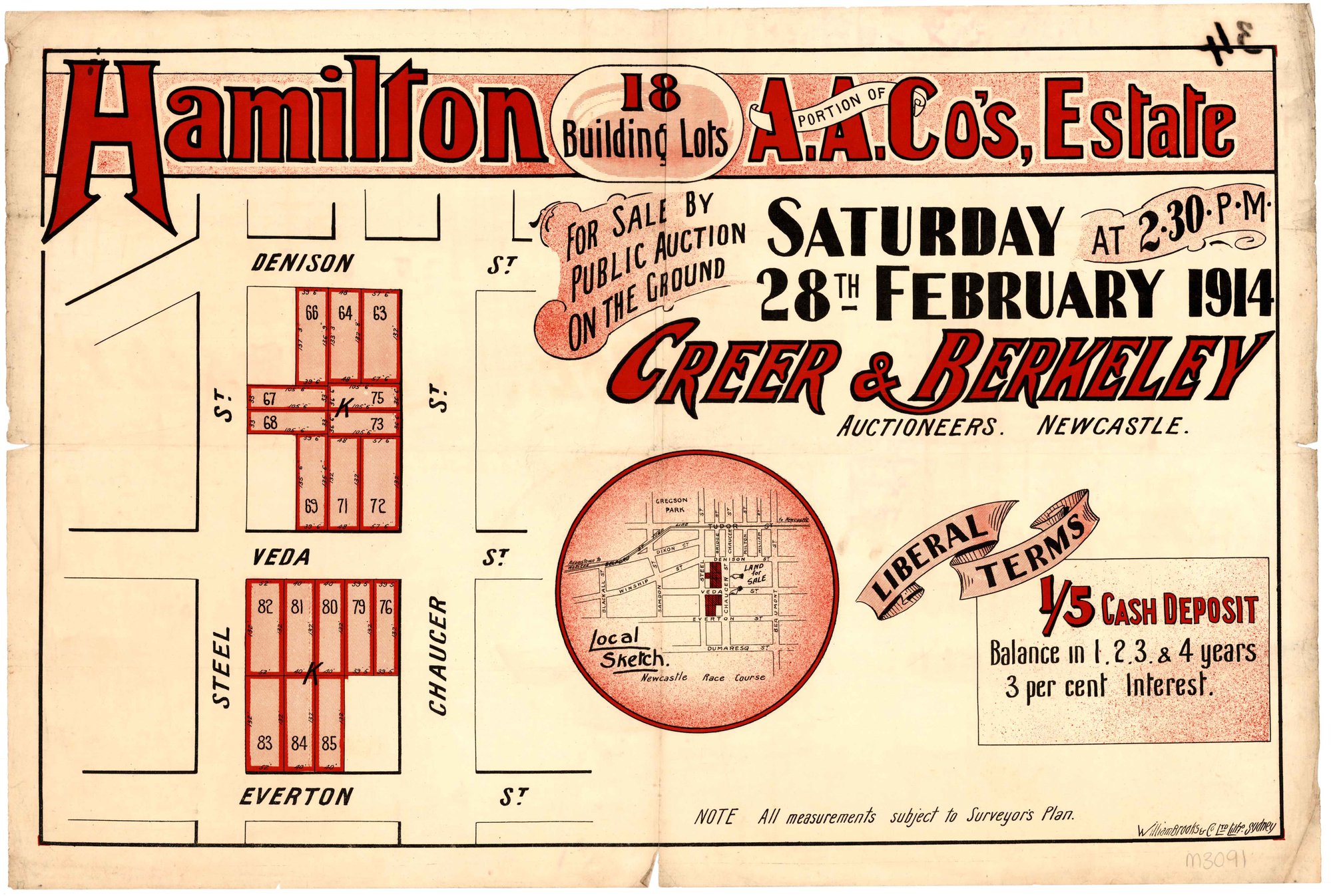 Hamilton Subdivision Plan, Saturday 28th February, 1914. (28th February 1914), [M3091]. Living Histories, accessed 18/03/2026, https://livinghistories.newcastle.edu.au/nodes/view/78416
