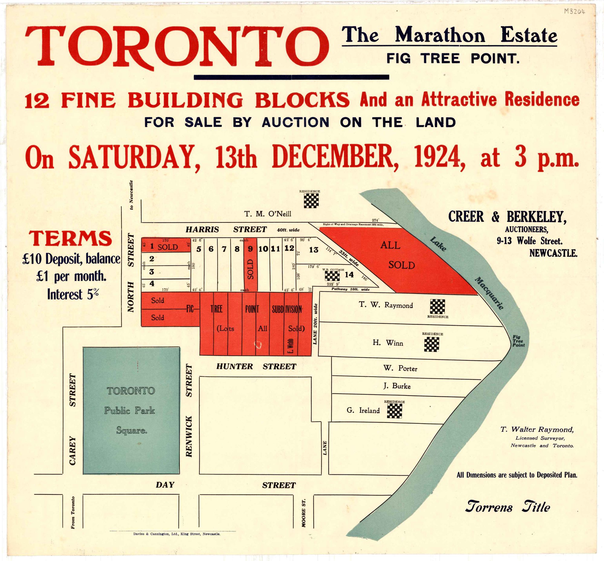 T. Walter Raymond, Toronto Subdivision Plan, Saturday 13 December, 1924. (13th December 1924), [M3204]. Living Histories, accessed 19/03/2026, https://livinghistories.newcastle.edu.au/nodes/view/78533