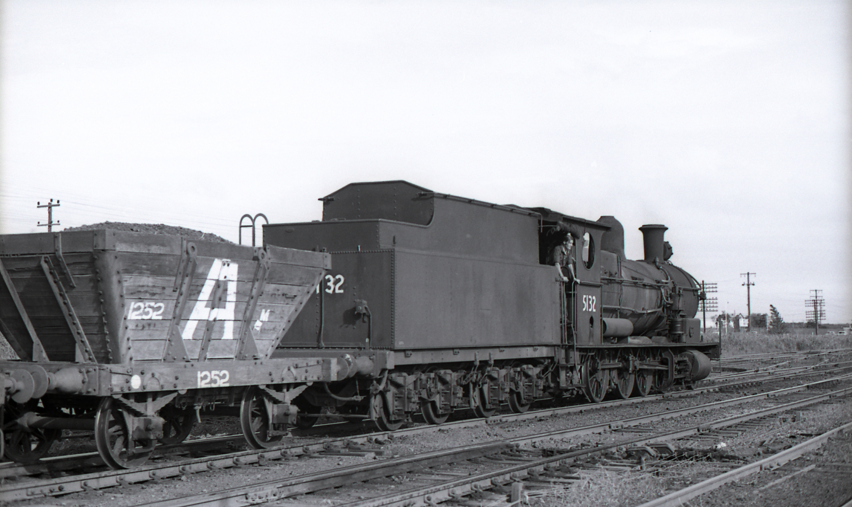Andrews, Brian Robert, 5132 "Up Coal" train at Hexham, NSW, 1 March 1972 (1st March 1972), [BRAN044_004]. Living Histories, accessed 17/04/2026, https://livinghistories.newcastle.edu.au/nodes/view/78684
