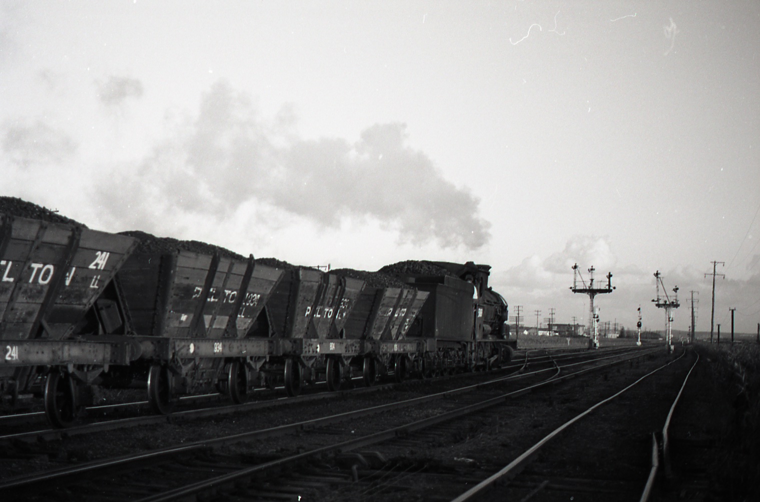 5069 "Up" Pelton Colliery coal train at Hexham, 24 March 1972, NSWGR