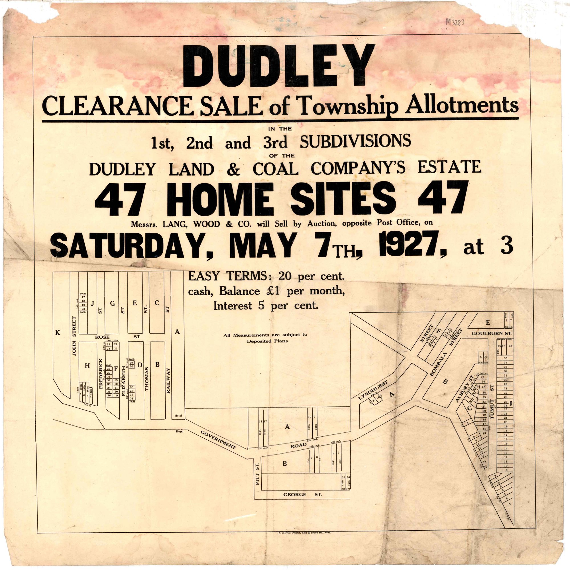 Dudley Land & Coal Company Estate, Dudley. Saturday May 8th, 1927 (8th May 1927), [M3283]. Living Histories, accessed 10/02/2026, https://livinghistories.newcastle.edu.au/nodes/view/78857