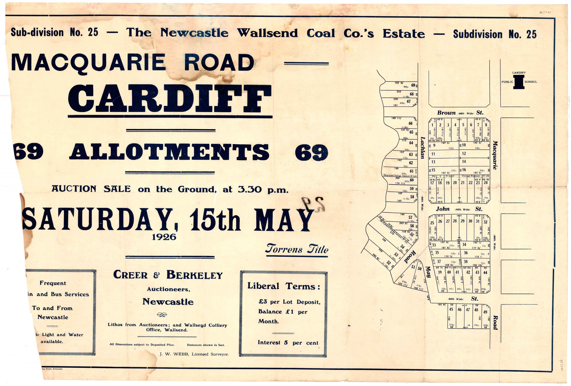 J.W. Webb, The Newcastle Wallsend Coal Co. Estate, Macquarie Road, Cardiff, Saturday 15th May, 1926 (15th May 1926), [M3301]. Living Histories, accessed 17/04/2026, https://livinghistories.newcastle.edu.au/nodes/view/78874