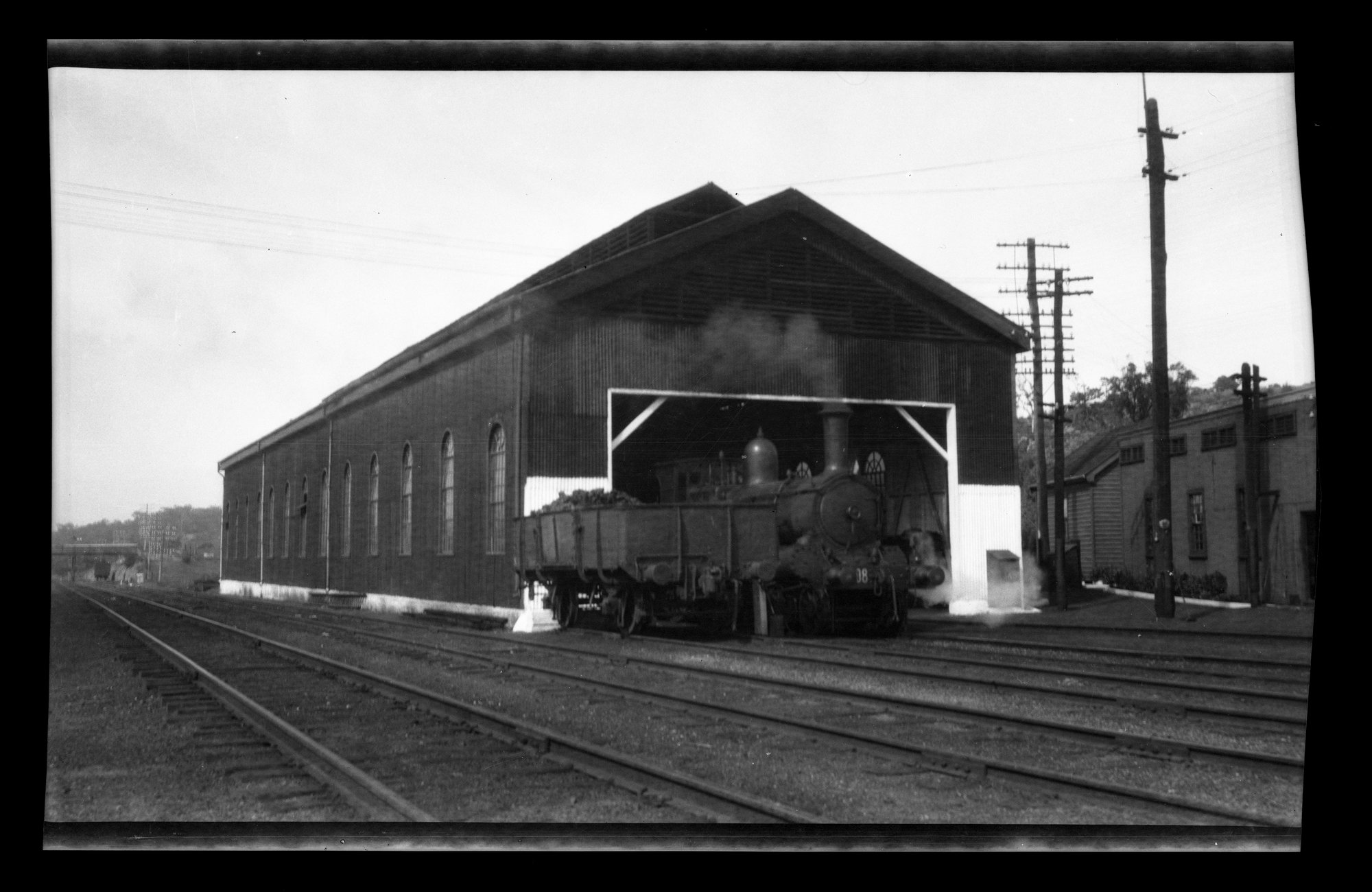 NSWGR Z12 Class, No. 1208, at large locomotive shed, coal hopper beside locomotive, Picton, [ARHSBox087_2365]. Living Histories, accessed 01/05/2026, https://livinghistories.newcastle.edu.au/nodes/view/79632