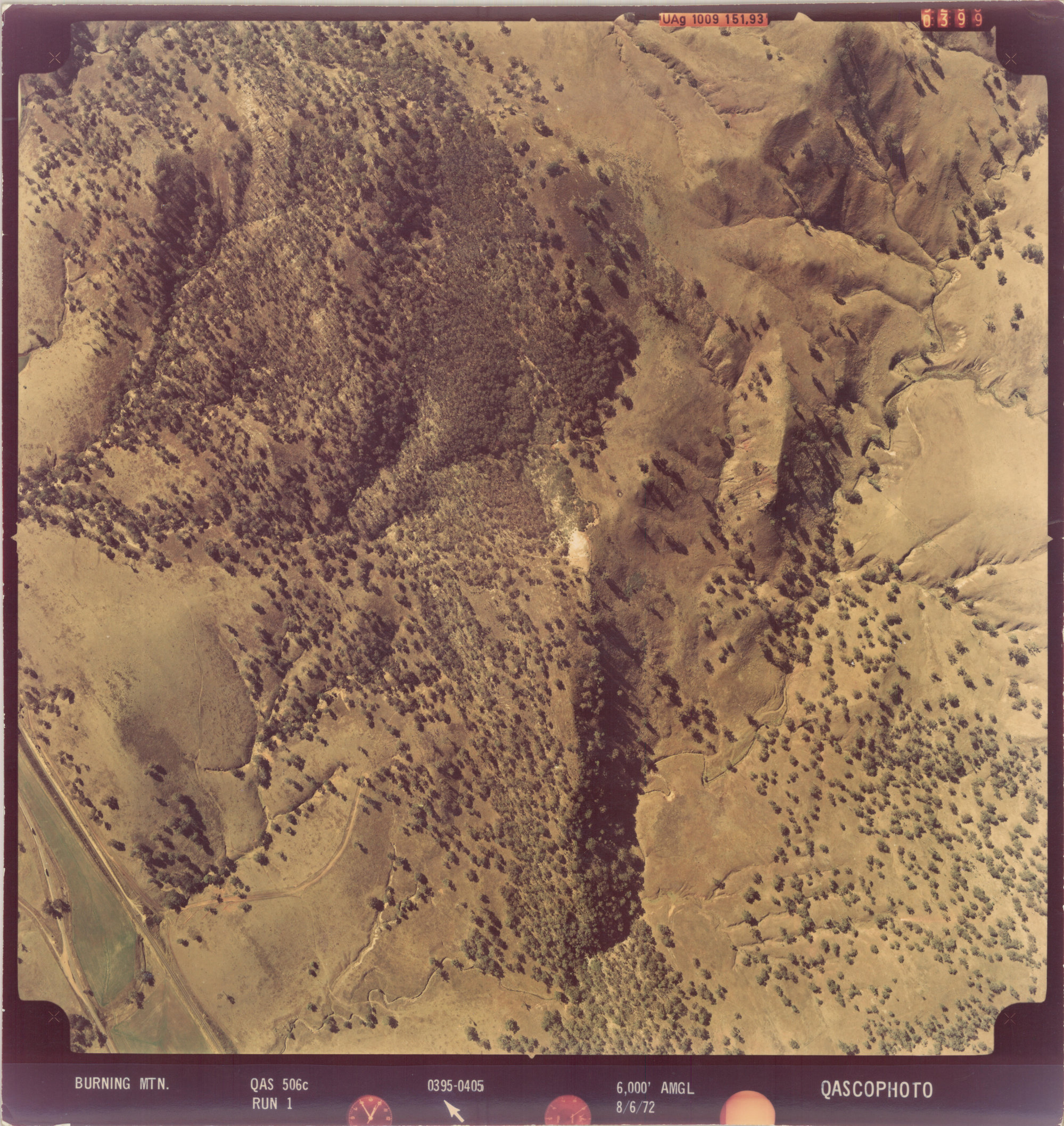 New South Wales. Department of Lands, Burning Mountain, NSW - Aerial photograph, June 1972 (399) (8th June 1972), [BURNING MTN-06-1972-R001-506c-399]. Living Histories, accessed 11/02/2026, https://livinghistories.newcastle.edu.au/nodes/view/79944