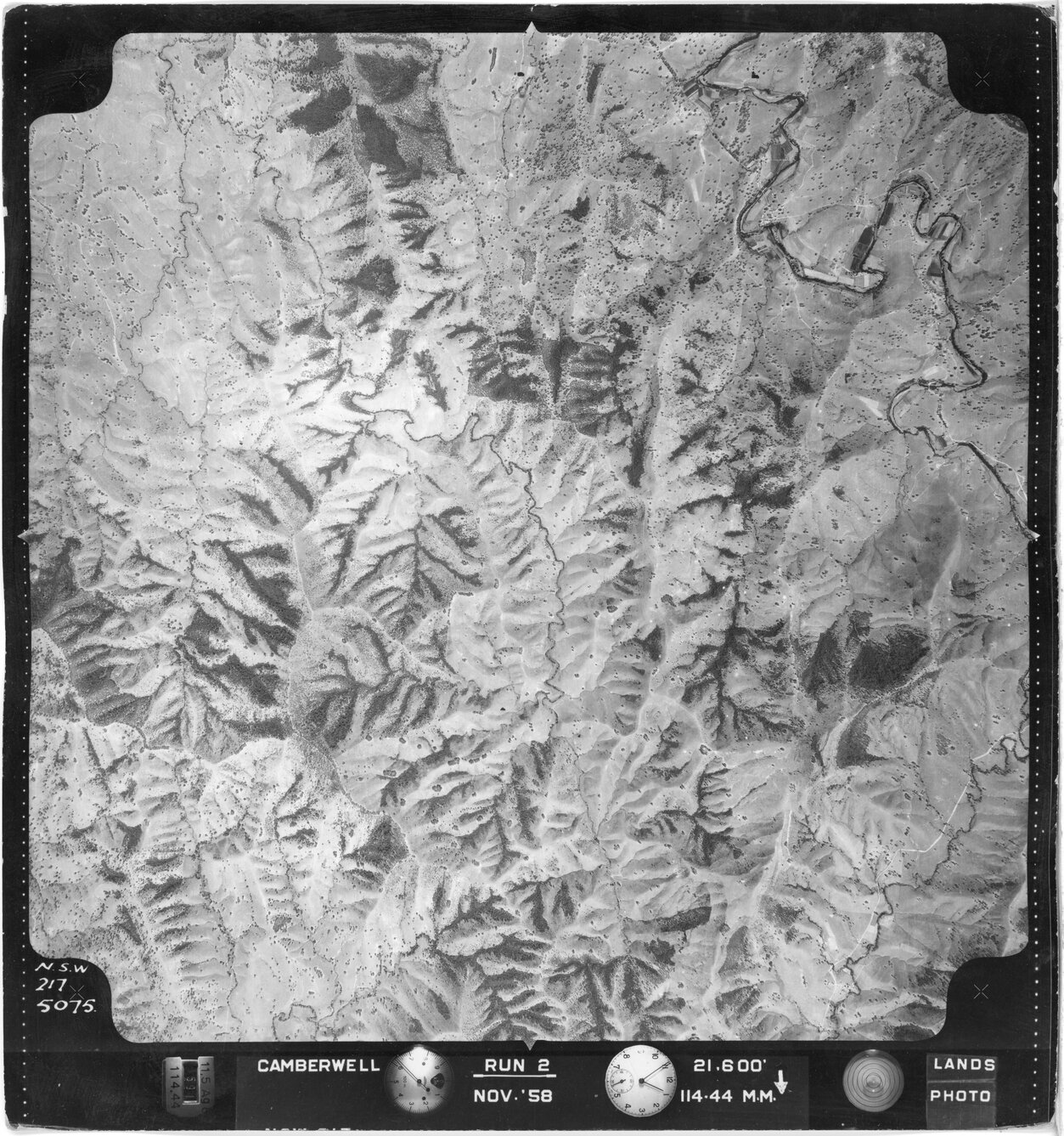New South Wales. Department of Lands, Camberwell, NSW - Aerial photograph, Novermber 1958 (5075) (1958-11), [CAMBERWELL-11-1958-R002-217-5075]. Living Histories, accessed 20/01/2026, https://livinghistories.newcastle.edu.au/nodes/view/79977