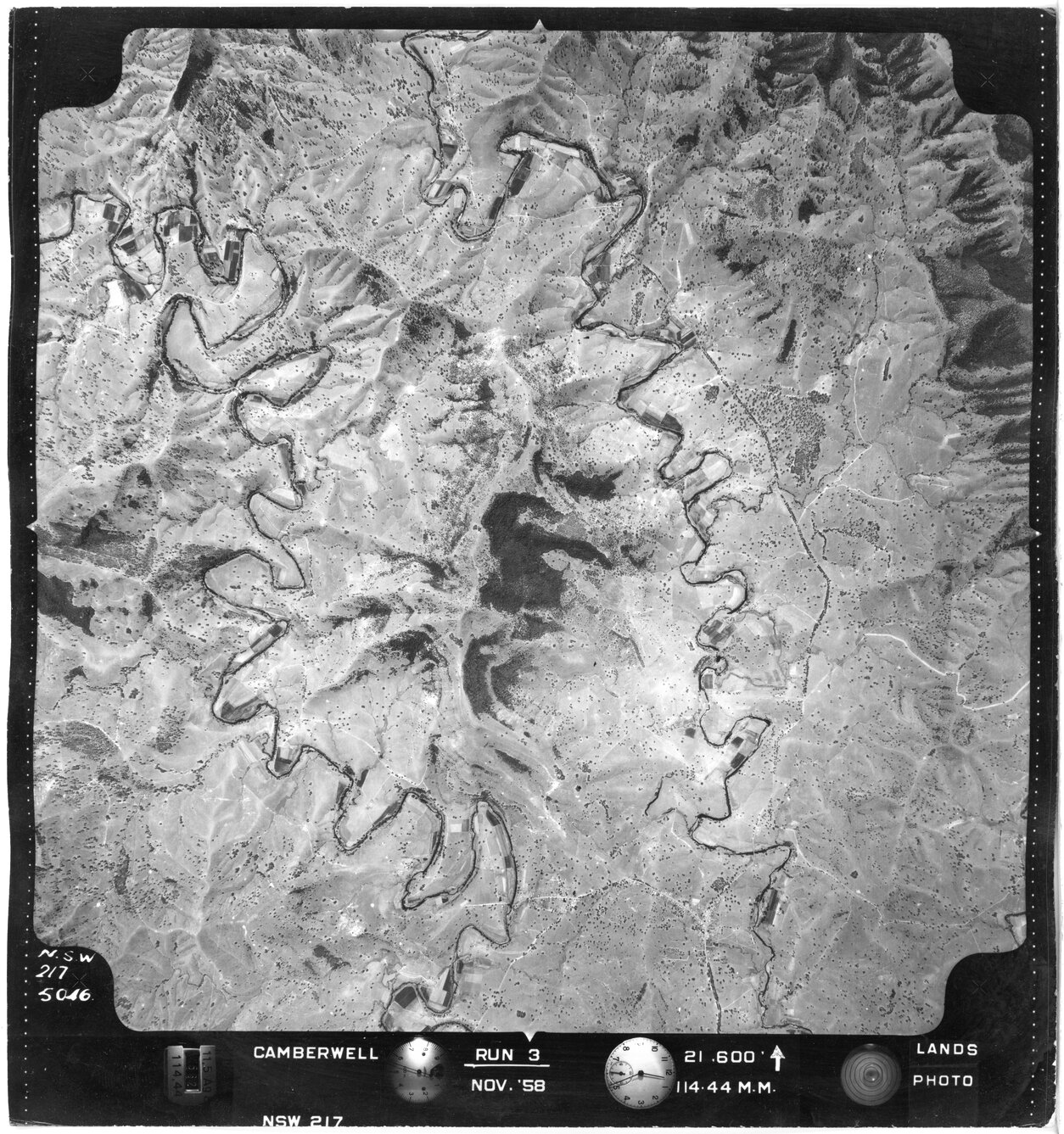 New South Wales. Department of Lands, Camberwell, NSW - Aerial photograph, Novermber 1958 (5046) (1958-11), [CAMBERWELL-11-1958-R003-217-5046]. Living Histories, accessed 17/02/2026, https://livinghistories.newcastle.edu.au/nodes/view/80010