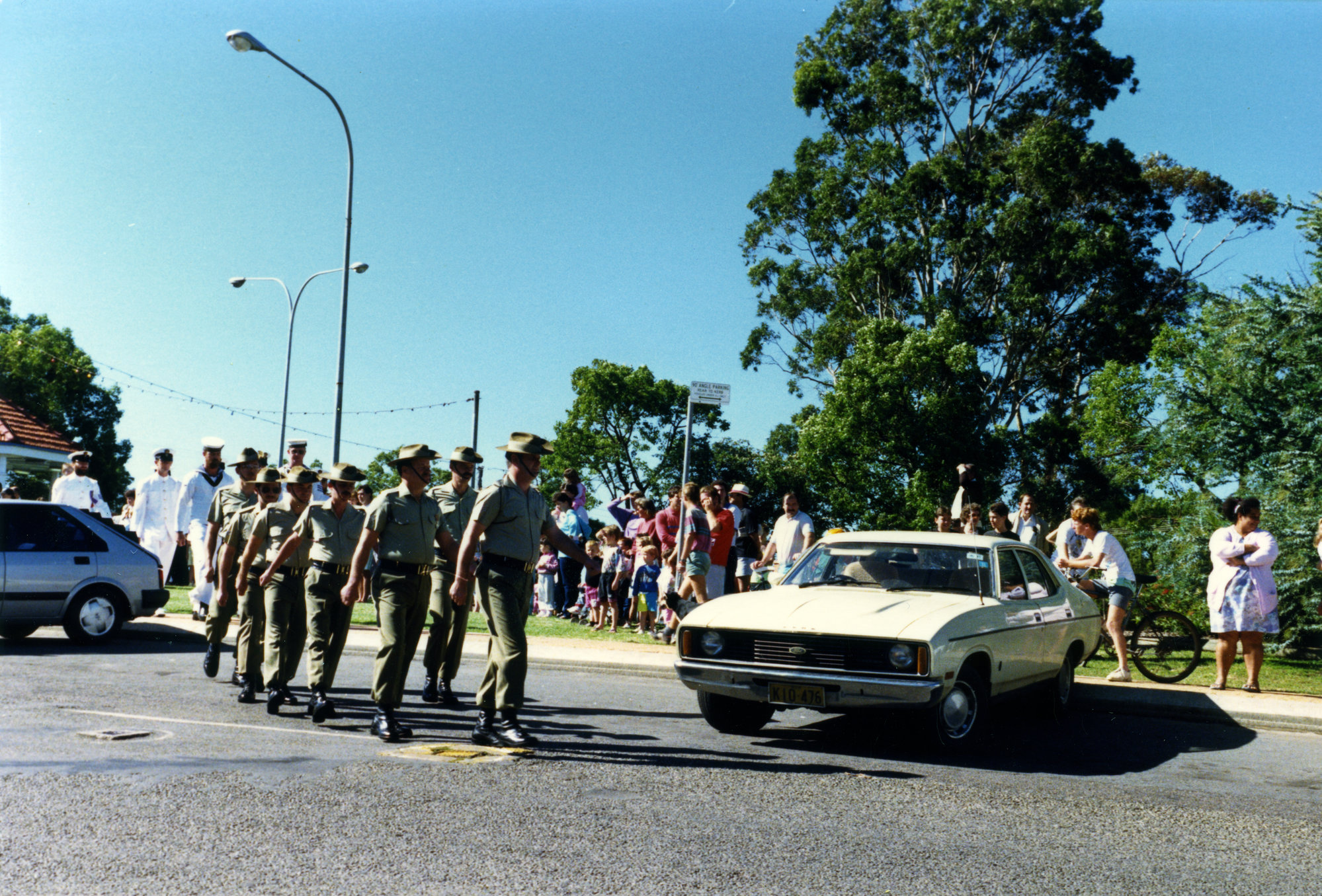 Sternbeck, Percival William, 1921-2004, ANZAC Day March, Kurri Kurri, NSW, 25 April 1990 (25th April 1990), [Sternbeck_Bk27_0490A_004]. Living Histories, accessed 15/04/2026, https://livinghistories.newcastle.edu.au/nodes/view/80127