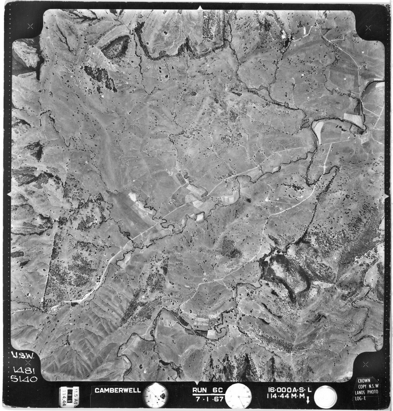 New South Wales. Department of Lands, Camberwell, NSW - Aerial photograph, January 1967 (5140) (7th January 1967), [CAMBERWELL-01-1967-R006C-1481-5140]. Living Histories, accessed 17/04/2026, https://livinghistories.newcastle.edu.au/nodes/view/80272