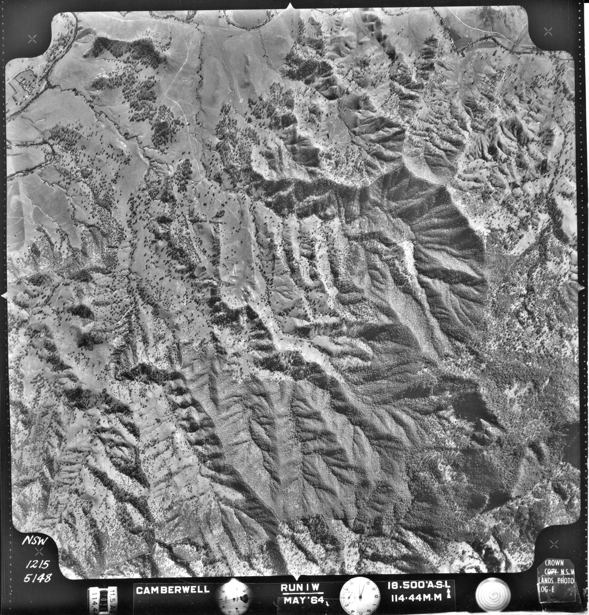 New South Wales. Department of Lands, Camberwell, NSW - Aerial photograph, May 1964 (5148) (1964-05), [CAMBERWELL-05-1964-R001W-1215-5148]. Living Histories, accessed 07/04/2026, https://livinghistories.newcastle.edu.au/nodes/view/80296