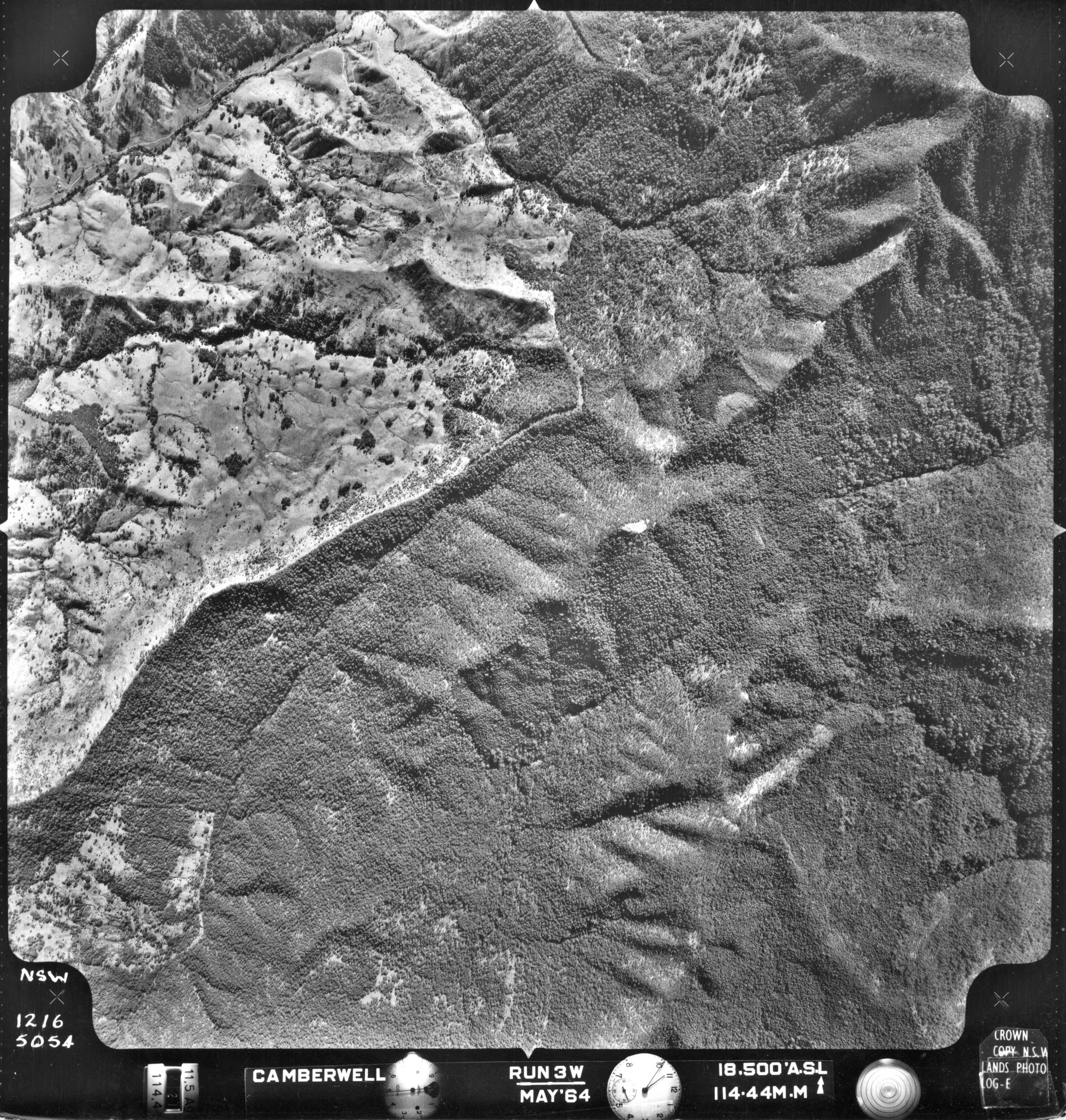New South Wales. Department of Lands, Camberwell, NSW - Aerial photograph, May 1964 (5054) (1964-05), [CAMBERWELL-05-1964-R003W-1216-5054]. Living Histories, accessed 15/04/2026, https://livinghistories.newcastle.edu.au/nodes/view/80343