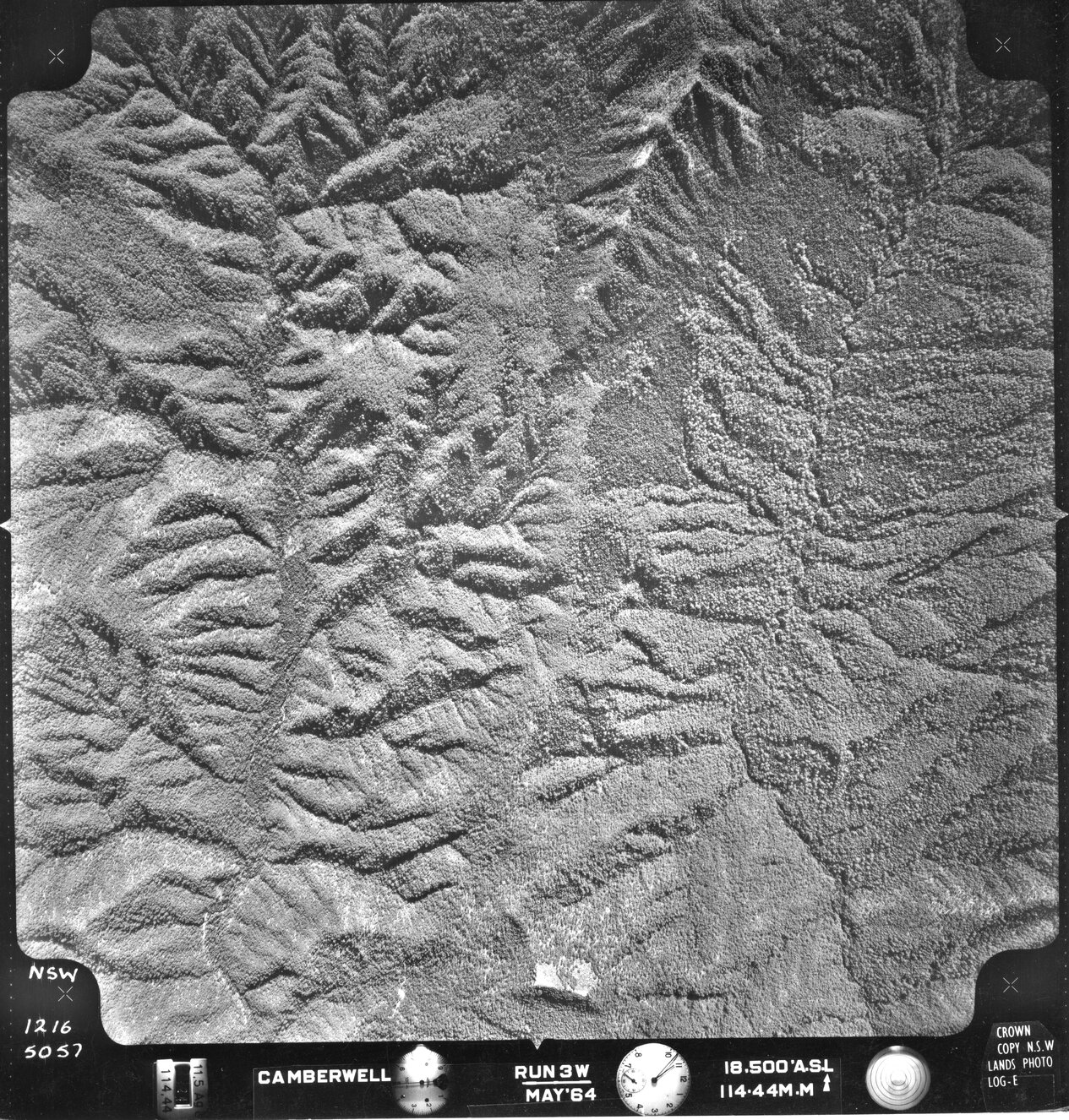 New South Wales. Department of Lands, Camberwell, NSW - Aerial photograph, May 1964 (5057) (1964-05), [CAMBERWELL-05-1964-R003W-1216-5057]. Living Histories, accessed 17/04/2026, https://livinghistories.newcastle.edu.au/nodes/view/80346