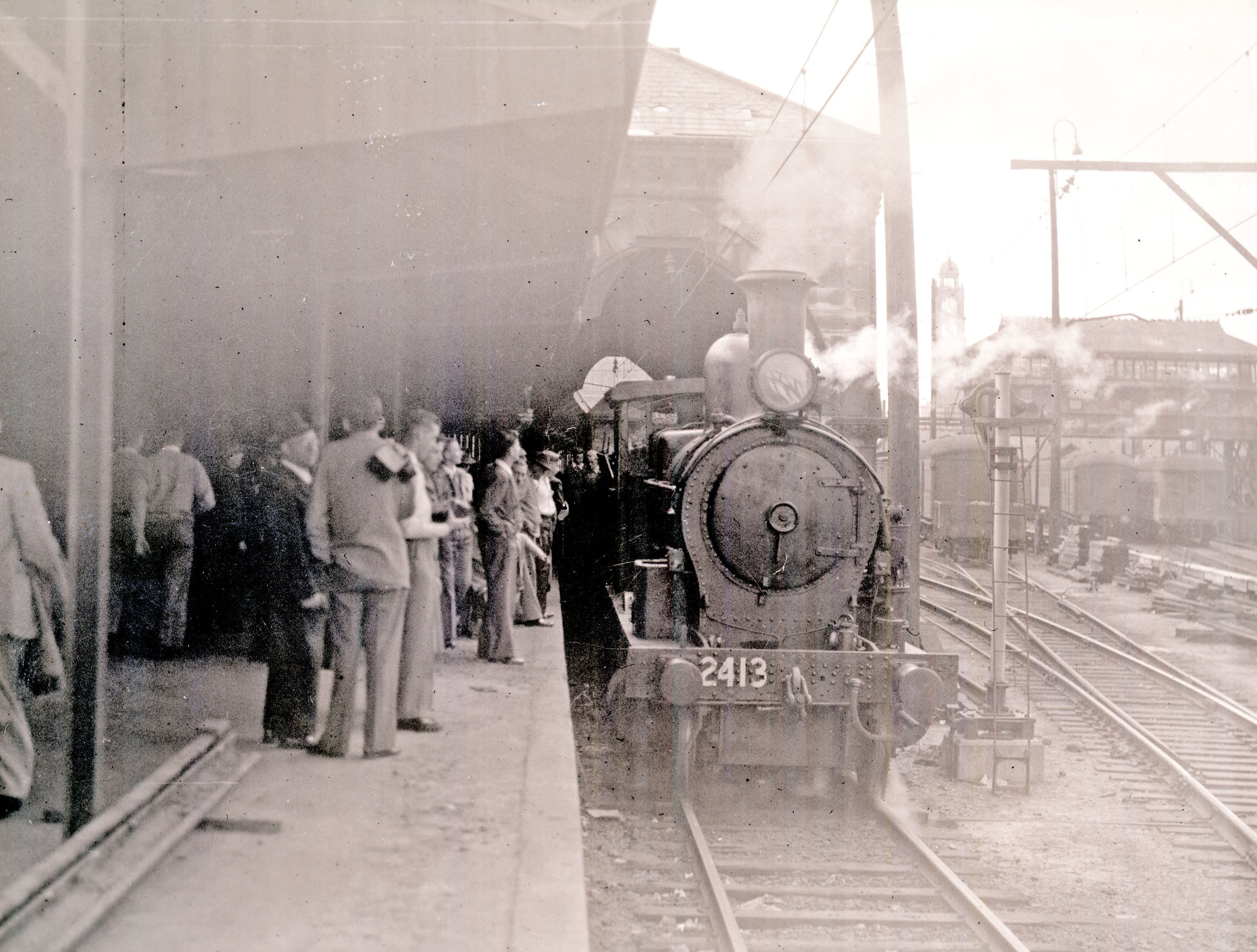 NSWGR Z24 Class No. 2413 2-6-0 Mogul Type on tour train awaiting to depart the Mortuary Station, Sydney, [1960s] ([1960s]), [ARHSBox010_0279]. Living Histories, accessed 21/01/2026, https://livinghistories.newcastle.edu.au/nodes/view/8041