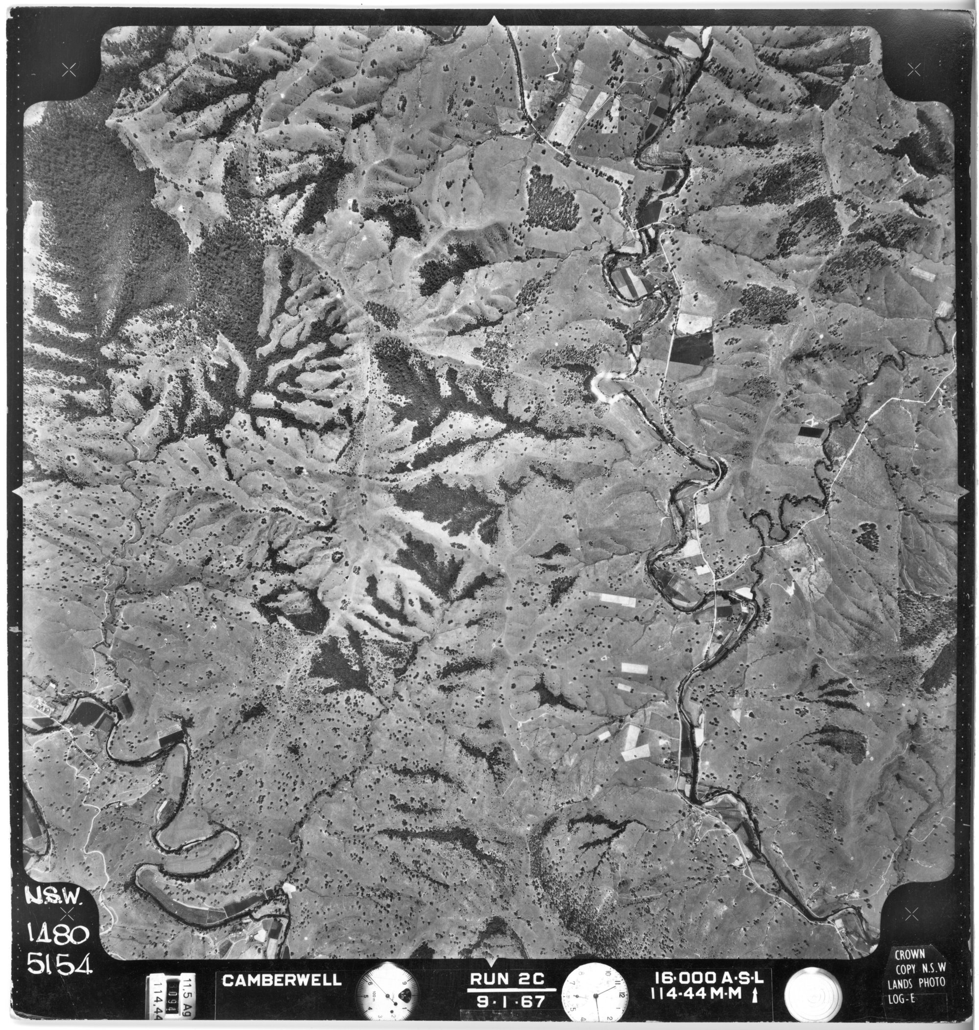 New South Wales. Department of Lands, Camberwell, NSW - Aerial photograph, January 1967 (5154) (9th January 1967), [CAMBERWELL-01-1967-R002C-1480-5154]. Living Histories, accessed 15/04/2026, https://livinghistories.newcastle.edu.au/nodes/view/80456
